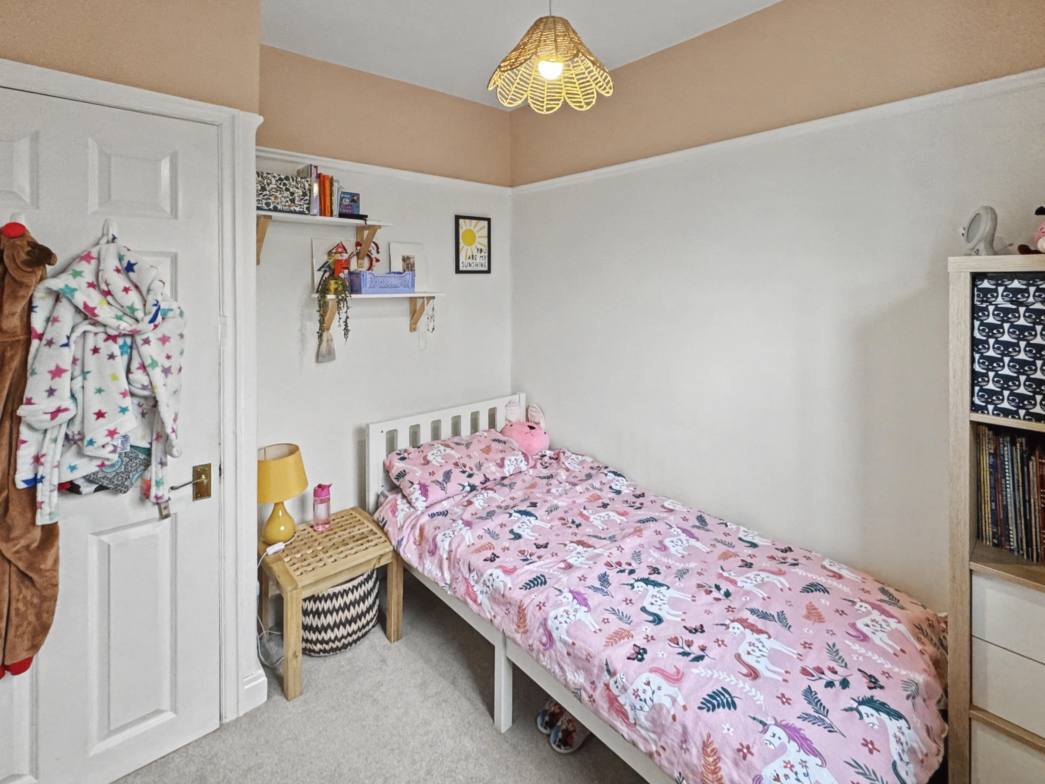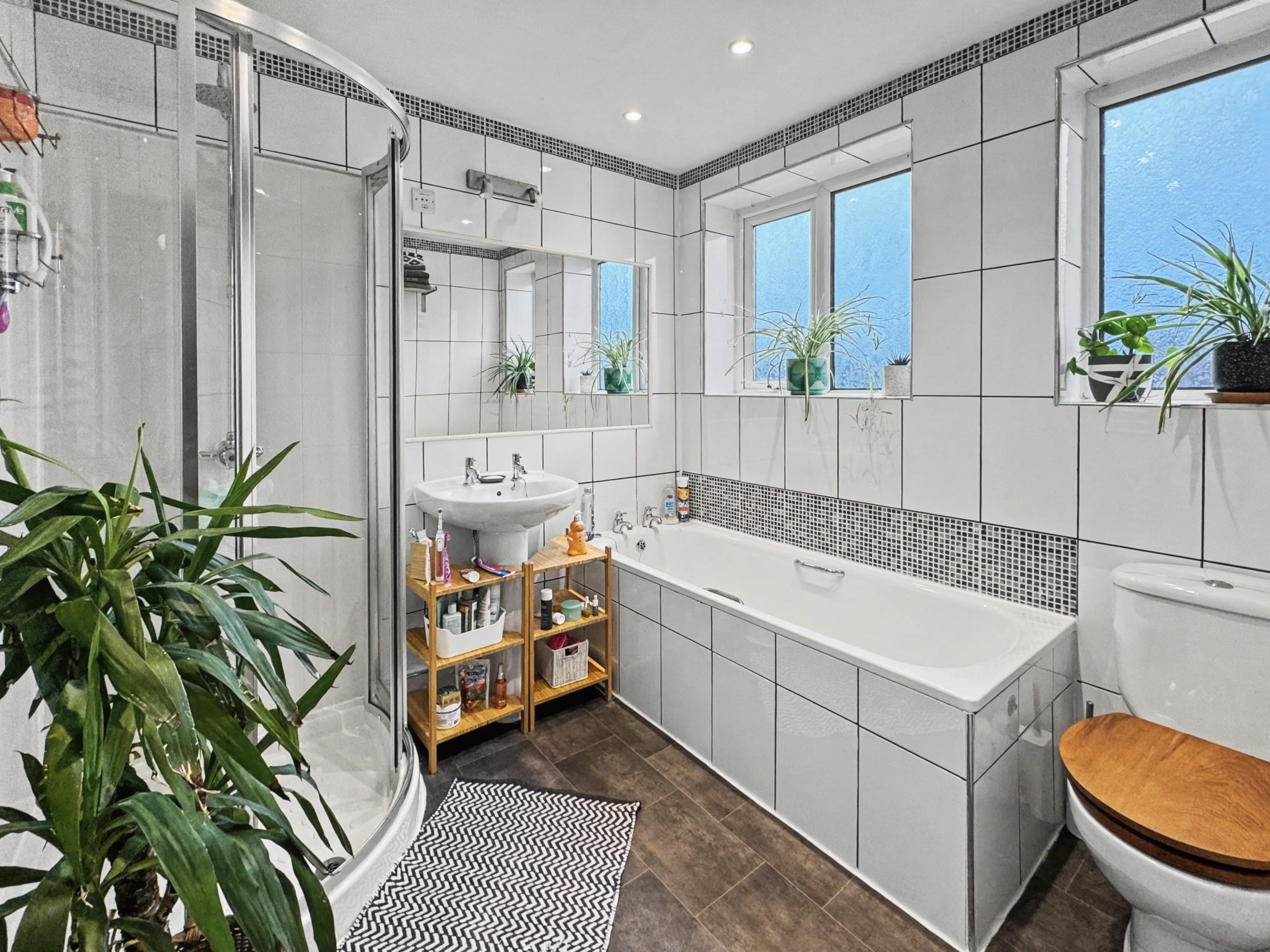 Upstairs, the accommodation continues with three well-proportioned bedrooms, including two generous doubles and a comfortable single bedroom. The contemporary family bathroom is fitted with a bath and separate shower, offering both style and practicality.