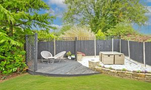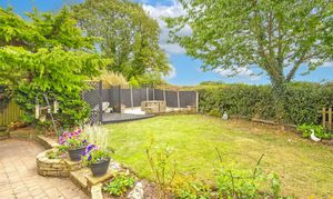 Outside, the low-maintenance enclosed garden backs onto open fields, offering privacy and tranquillity. A brick store/potting shed adds practicality for those with green fingers. The substantial driveway, alongside a garage, provides ample off-street parking for multiple vehicles.