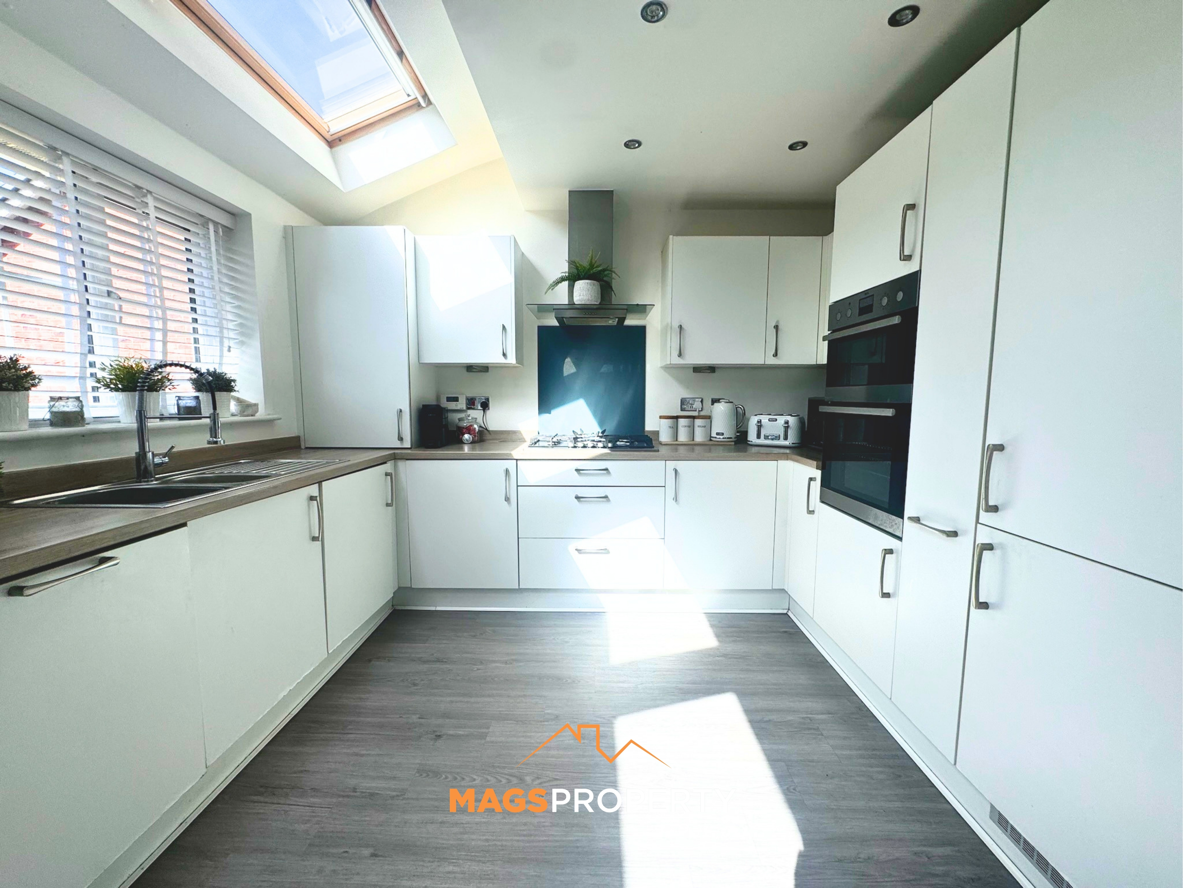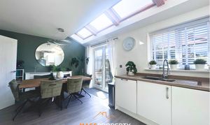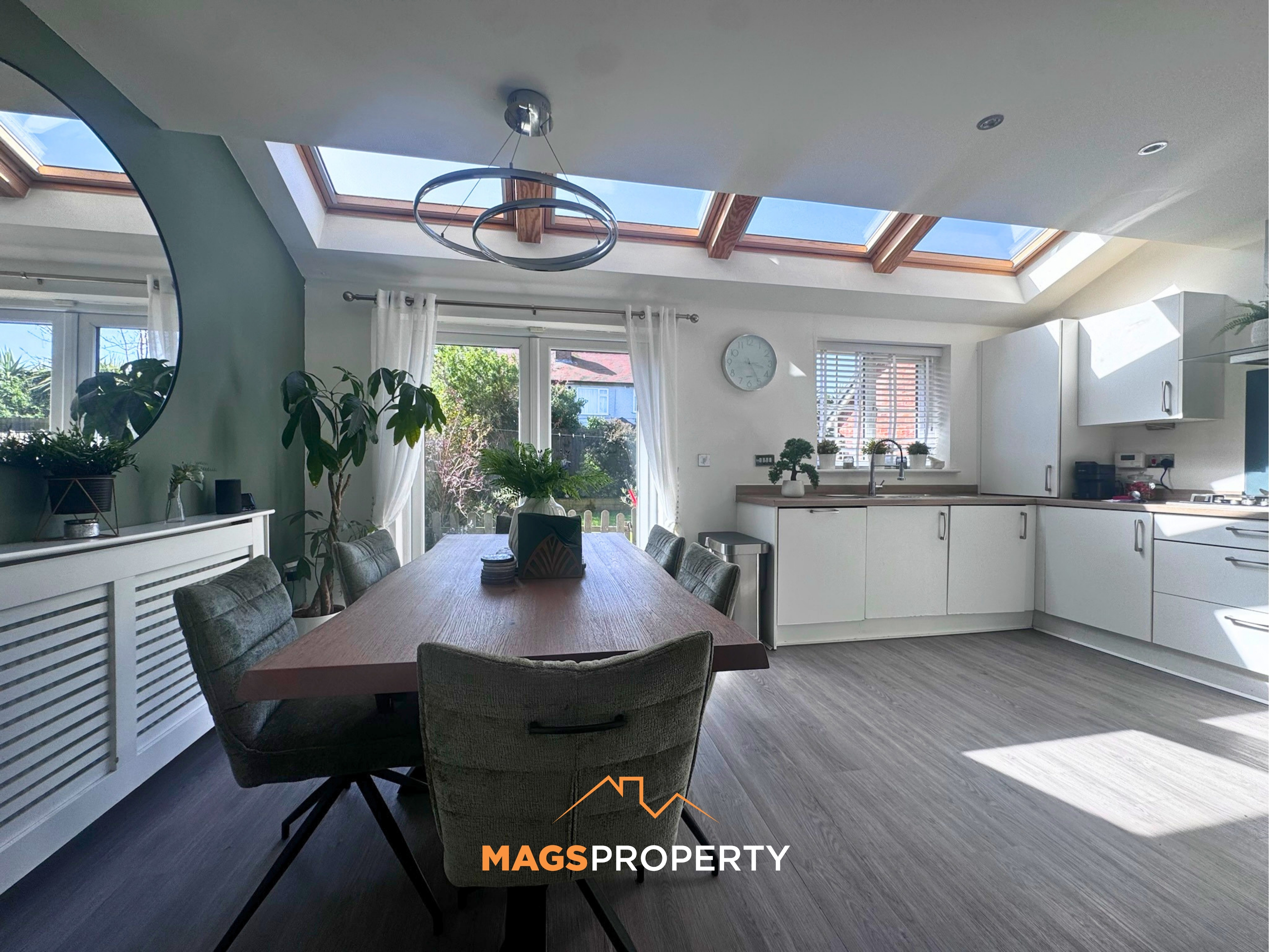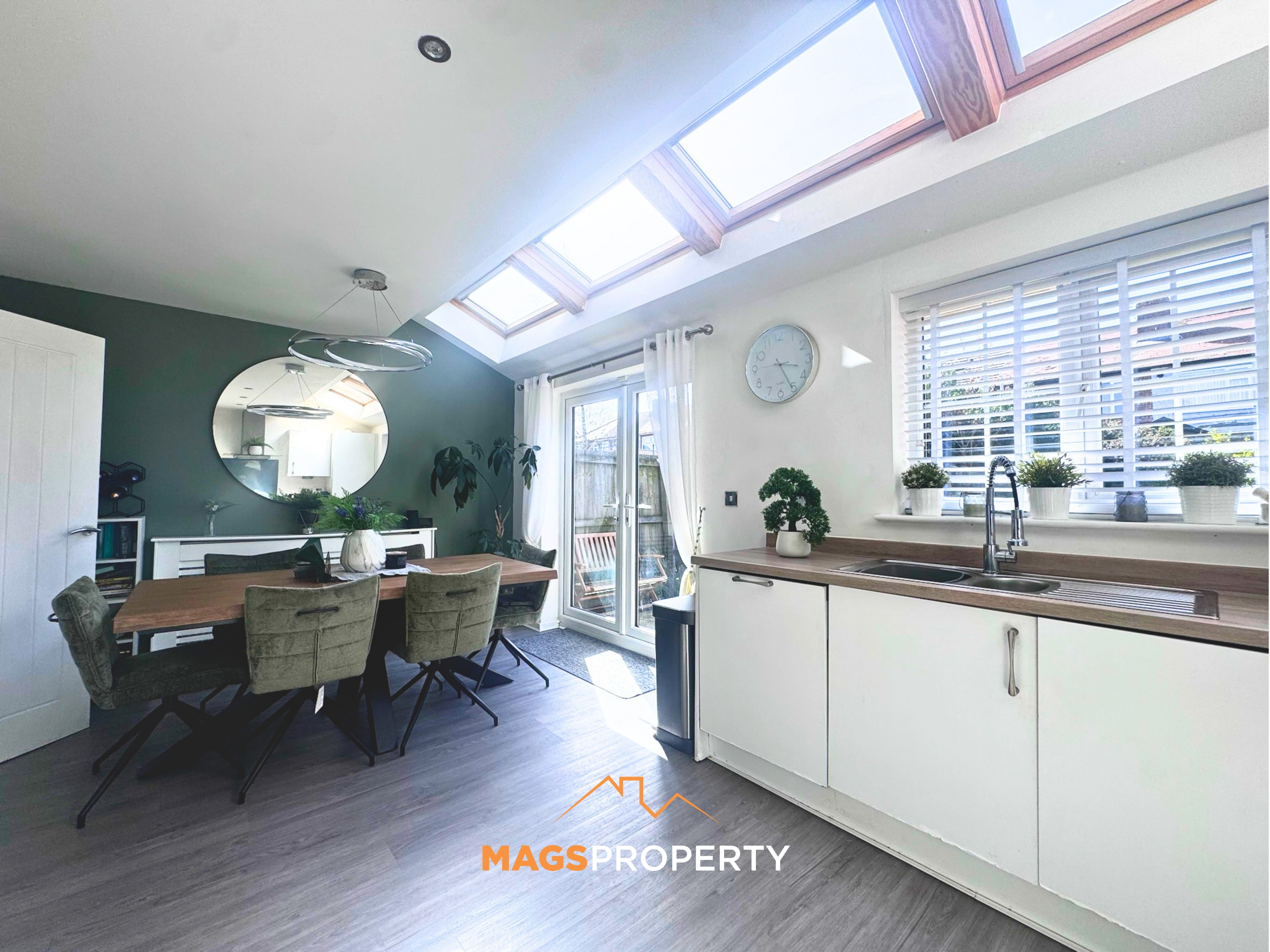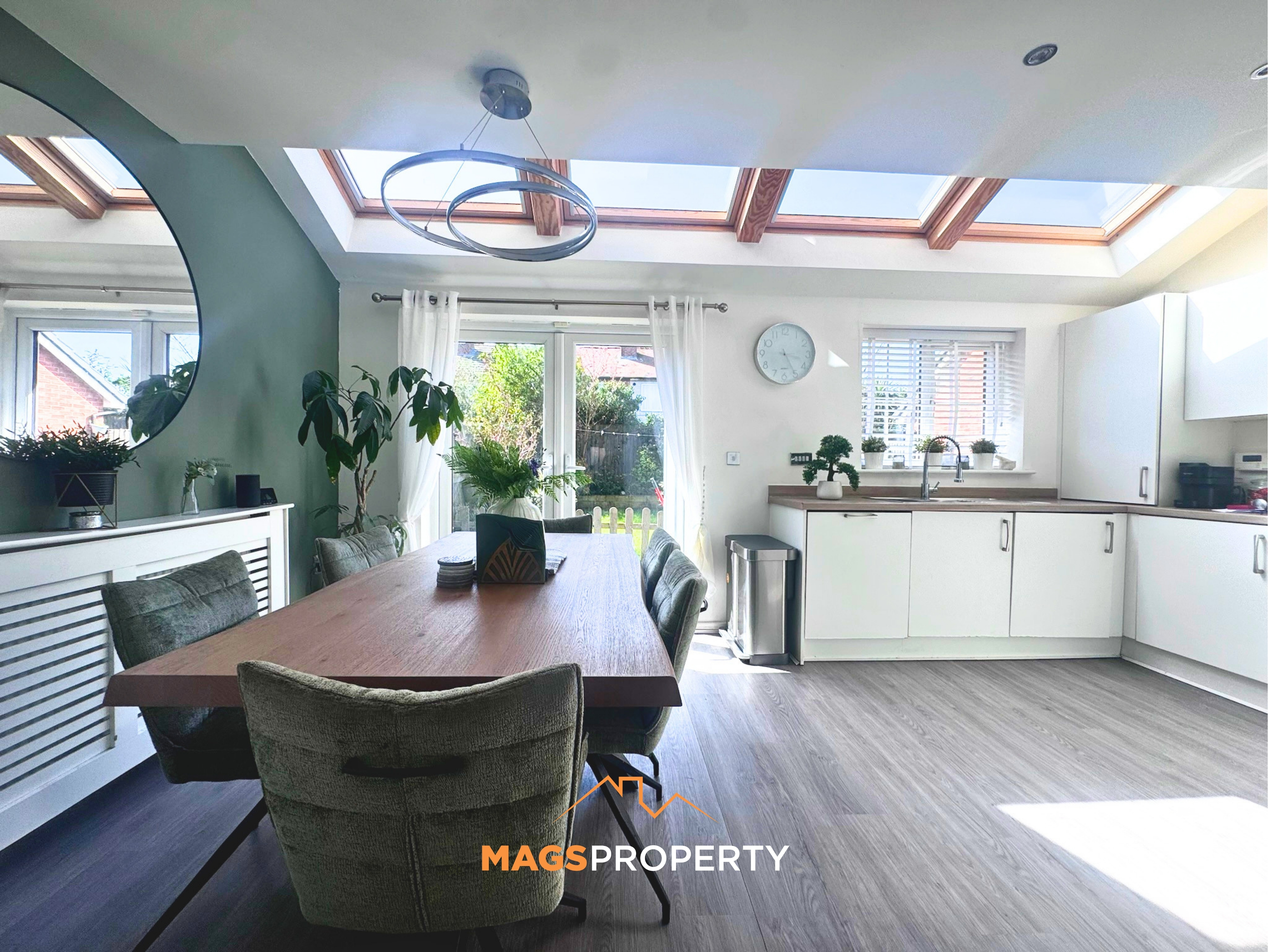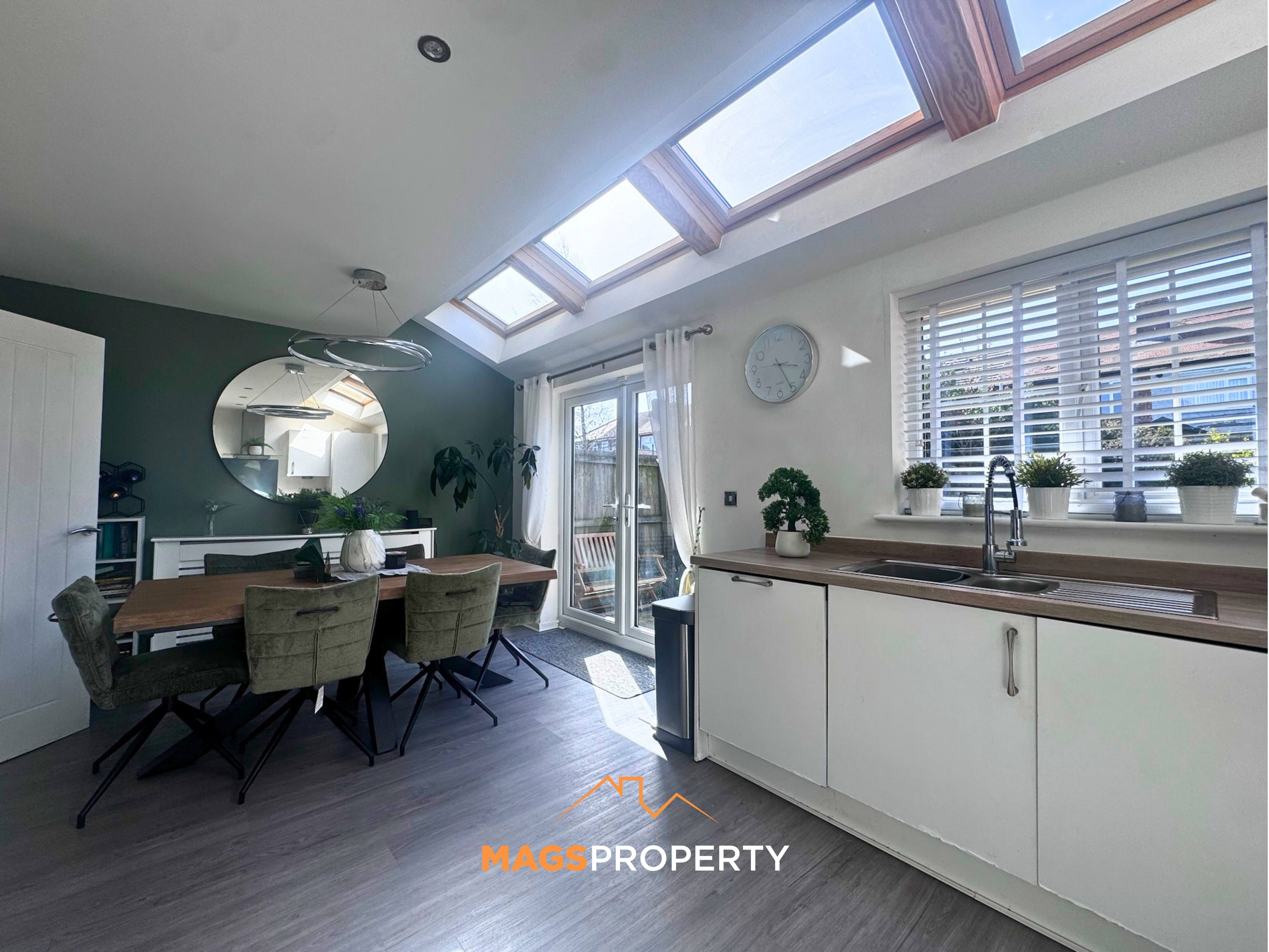 The heart of the home is undoubtedly the bright and contemporary kitchen/diner. Flooded with natural light thanks to patio doors and Velux windows, this space is perfect for both family life and entertaining, offering a seamless connection between indoor and outdoor living.