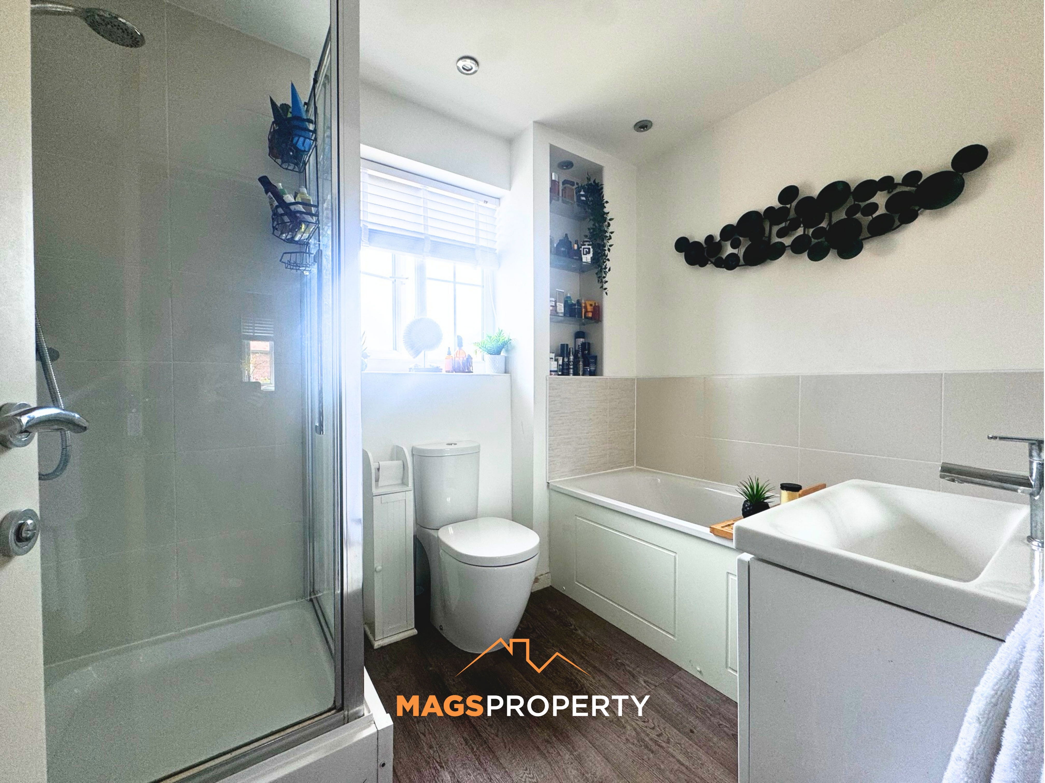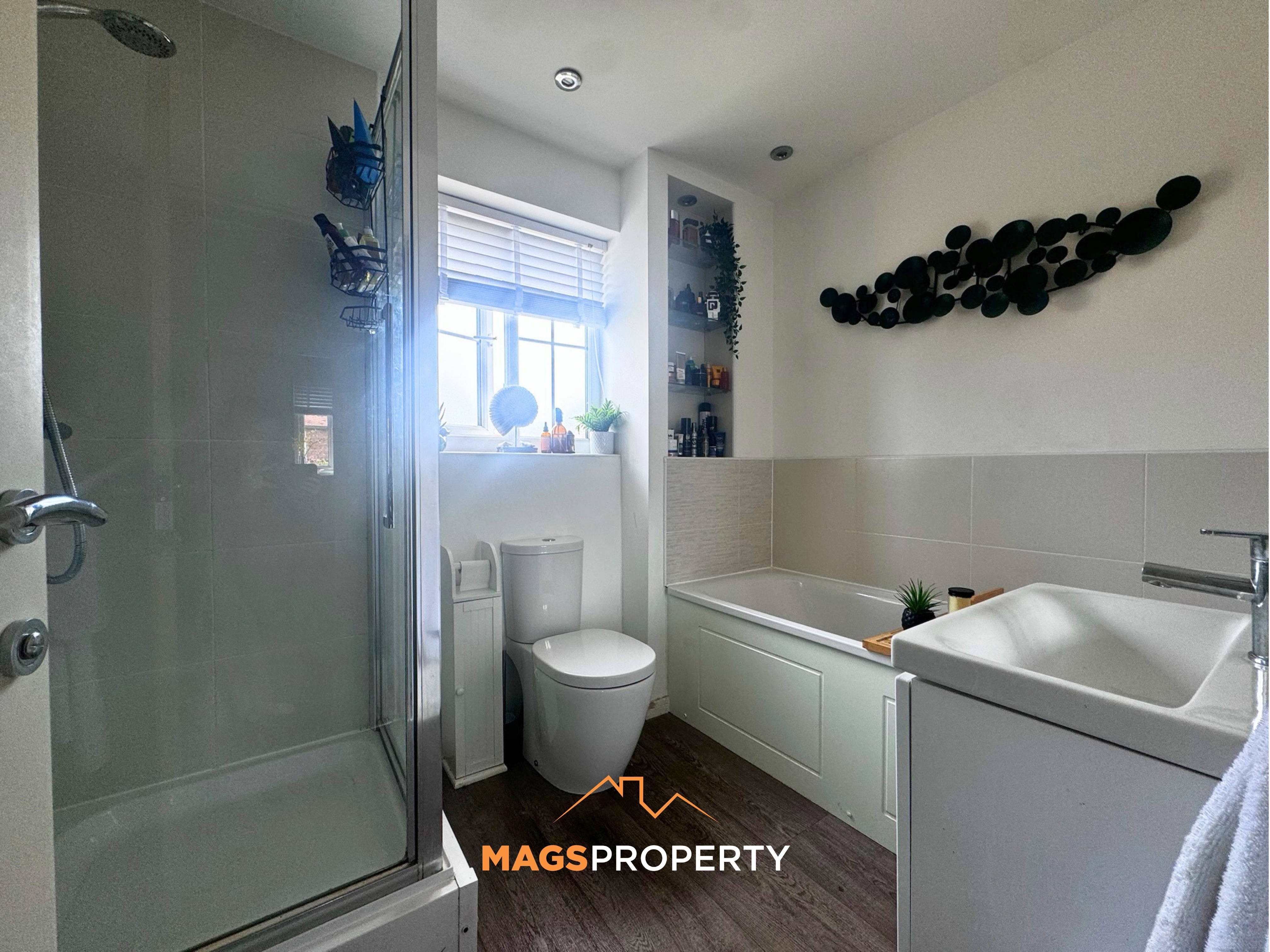 Upstairs, the property continues to impress with three well-proportioned bedrooms, providing flexibility for family living, guest accommodation, or even a home office. A modern family bathroom completes the first floor, finished to a stylish and practical standard.
