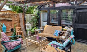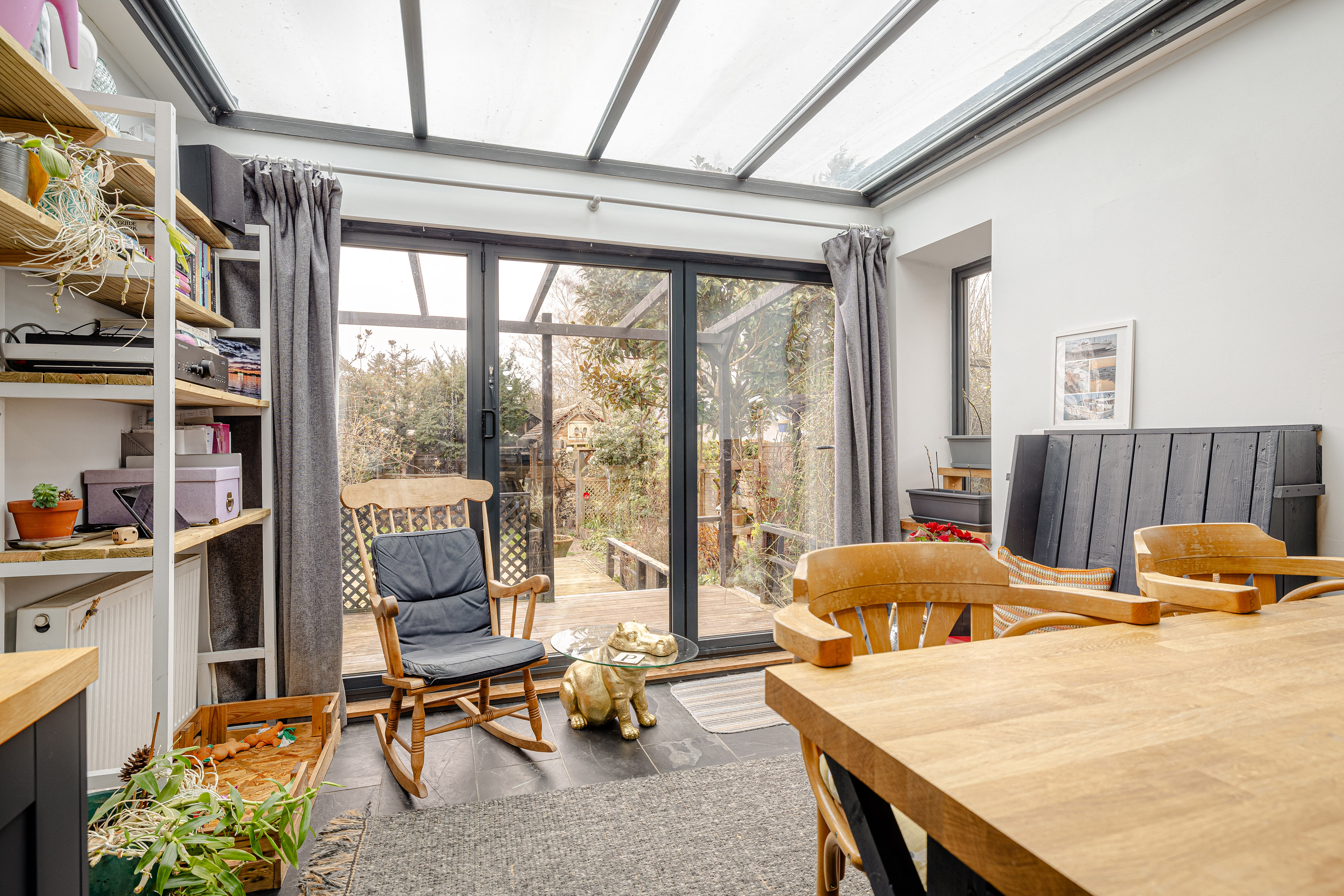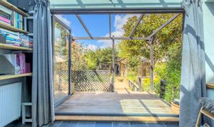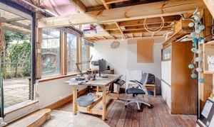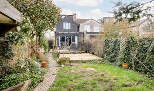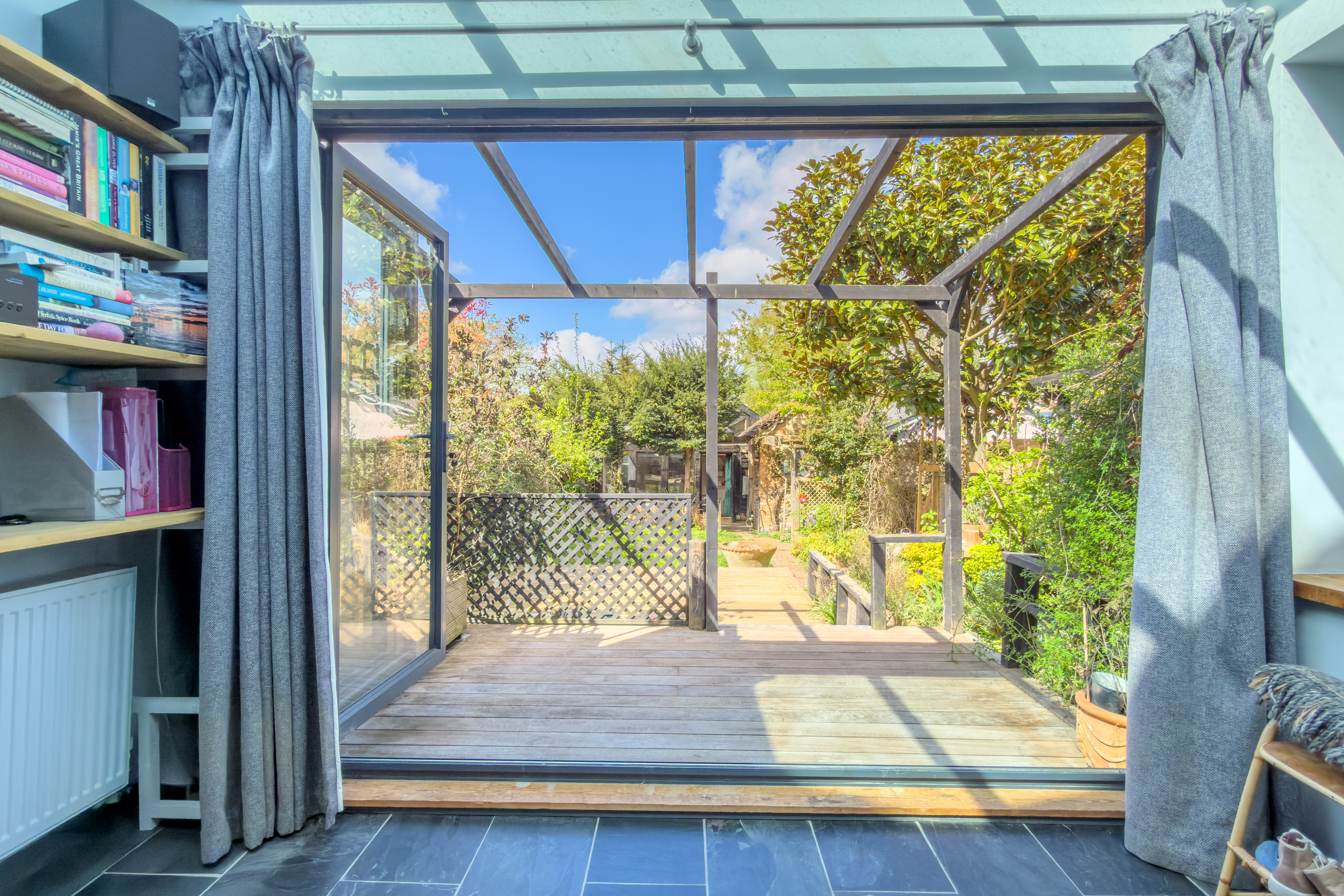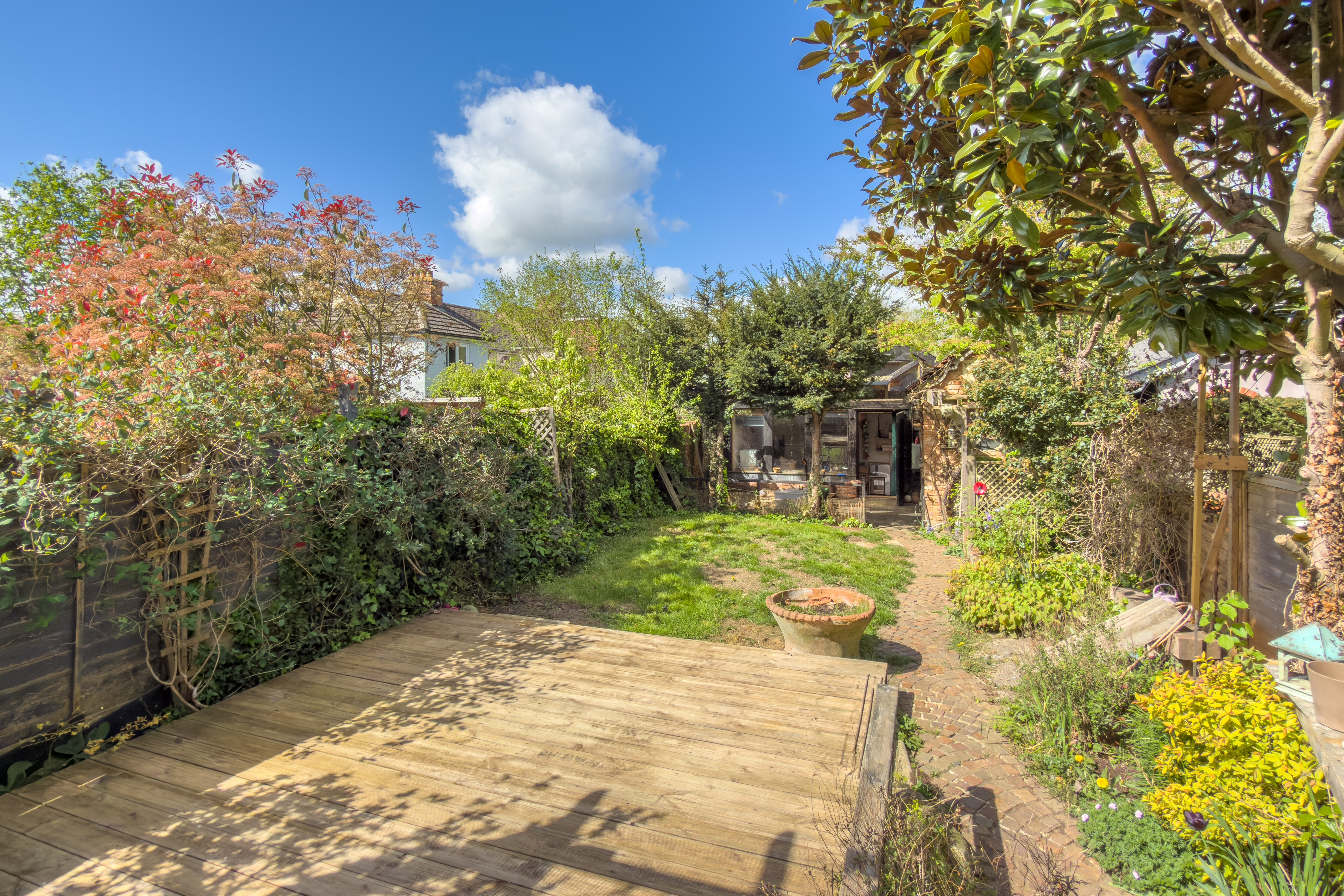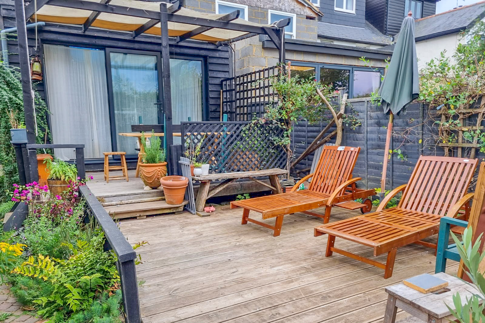 Outside, the rear garden has an established and characterful feel, with lawn, decked seating areas, mature planting and winding pathways creating a lovely setting for both relaxing and entertaining. The detached outbuilding is another standout feature, offering excellent flexibility for those looking for a work-from-home space, studio, workshop or hobbies room.