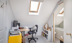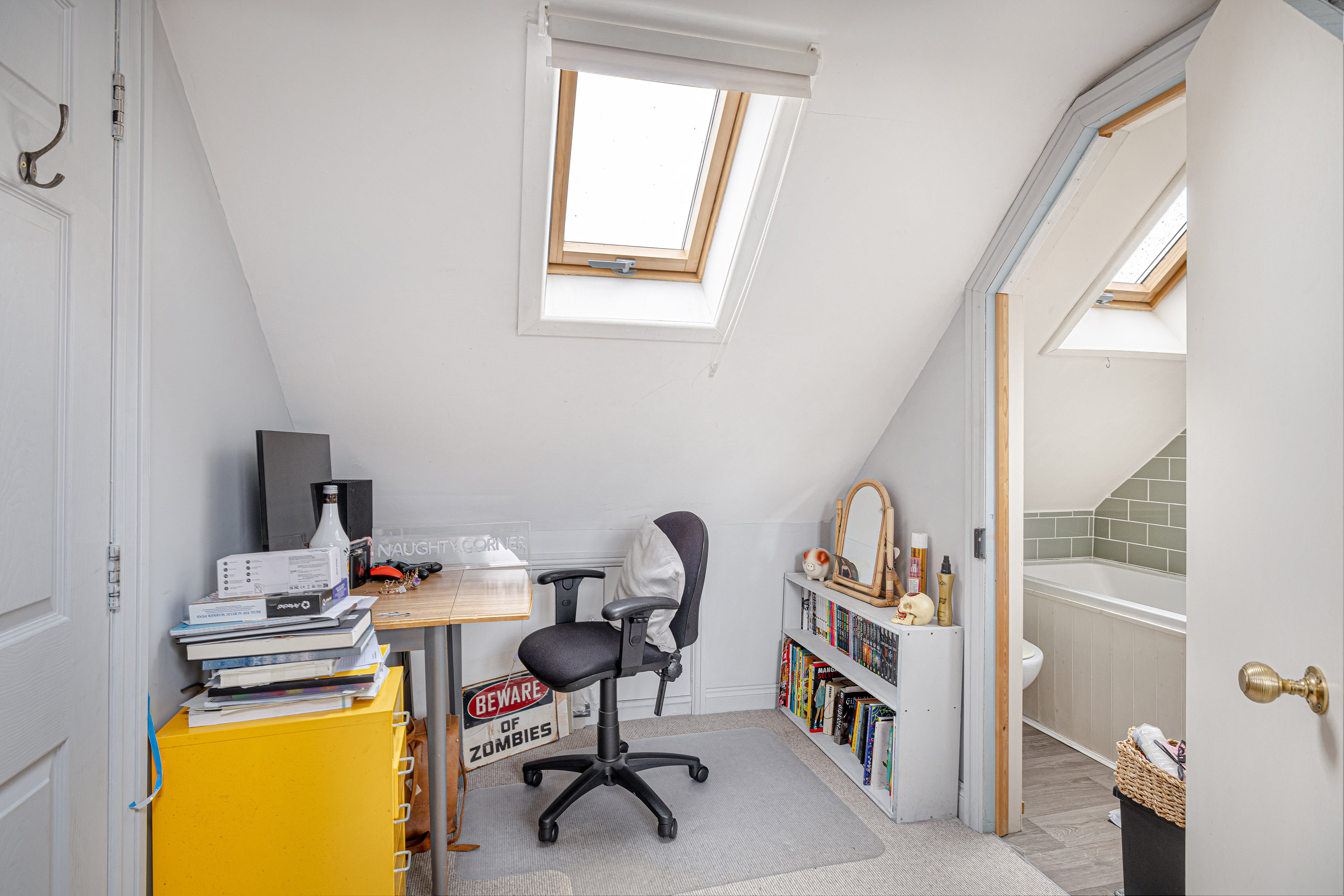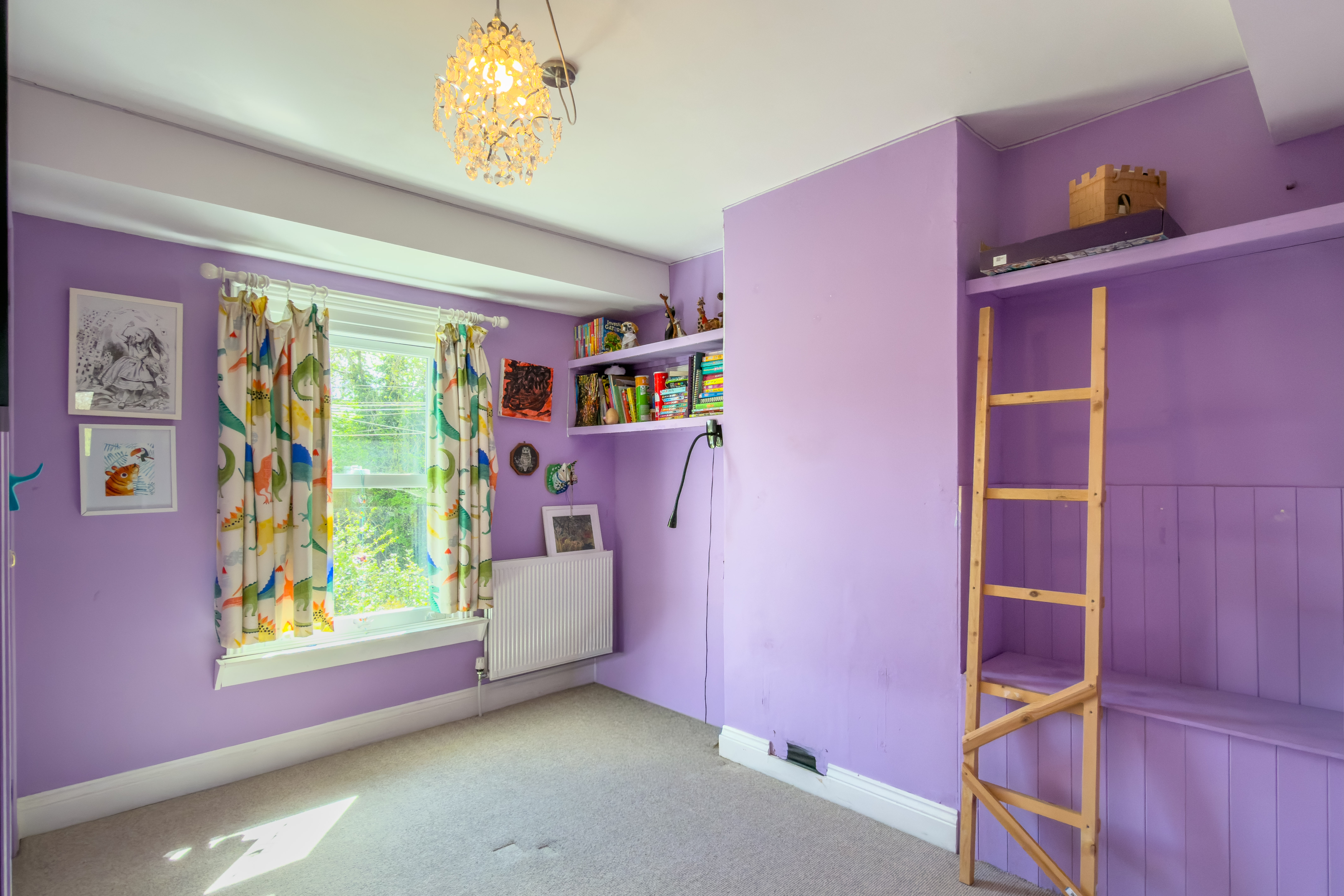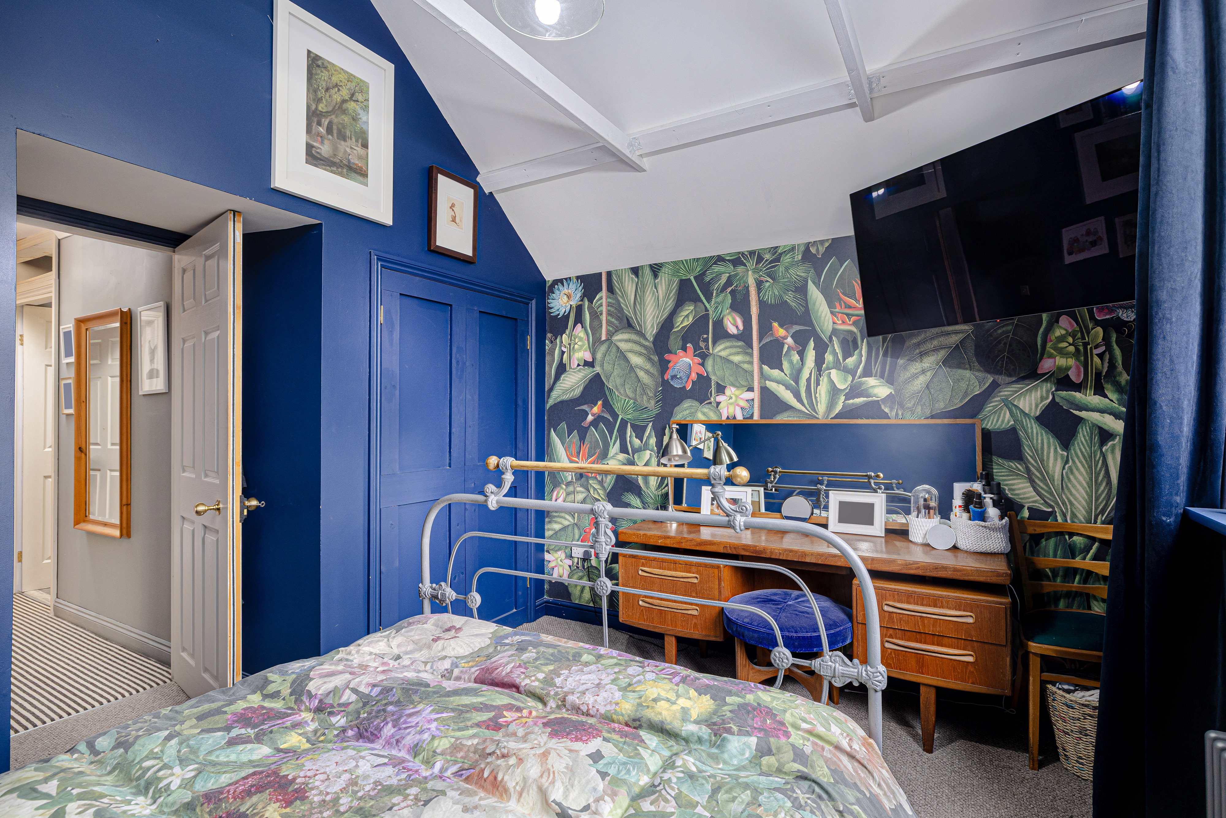 The first floor offers three bedrooms and a family bathroom, all presented with plenty of personality and warmth. On the second floor, the principal bedroom provides a peaceful top-floor retreat with a separate dressing room/study area and its own bathroom, creating an appealing principal suite.
