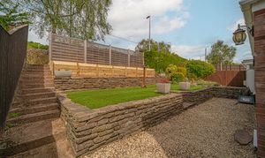 Stepping outside we have the magnificent rear garden, which offers an abundance of outdoor space for relaxing in the sunshine and entertaining guests over tea/coffee, or enjoying dining al-fresco style. The garden consists of two well sized patios found either side of the large grass lawn, which is accented with pebble stone and genuine palm trees to create a tropical atmosphere to this luscious garden retreat. The rear garden also connects to a spacious driveway, which can provide parking for 2-3 vehicles, connecting onto the street. At the front of the house there is another lovely garden space, ensuring residents can enjoy a great amount of sunlight throughout all hours of the day. This front garden is brand new, having been recently landscaped with a low maintenance turf, while a staircase leads us onto the main road to provide another access point to the property.