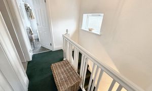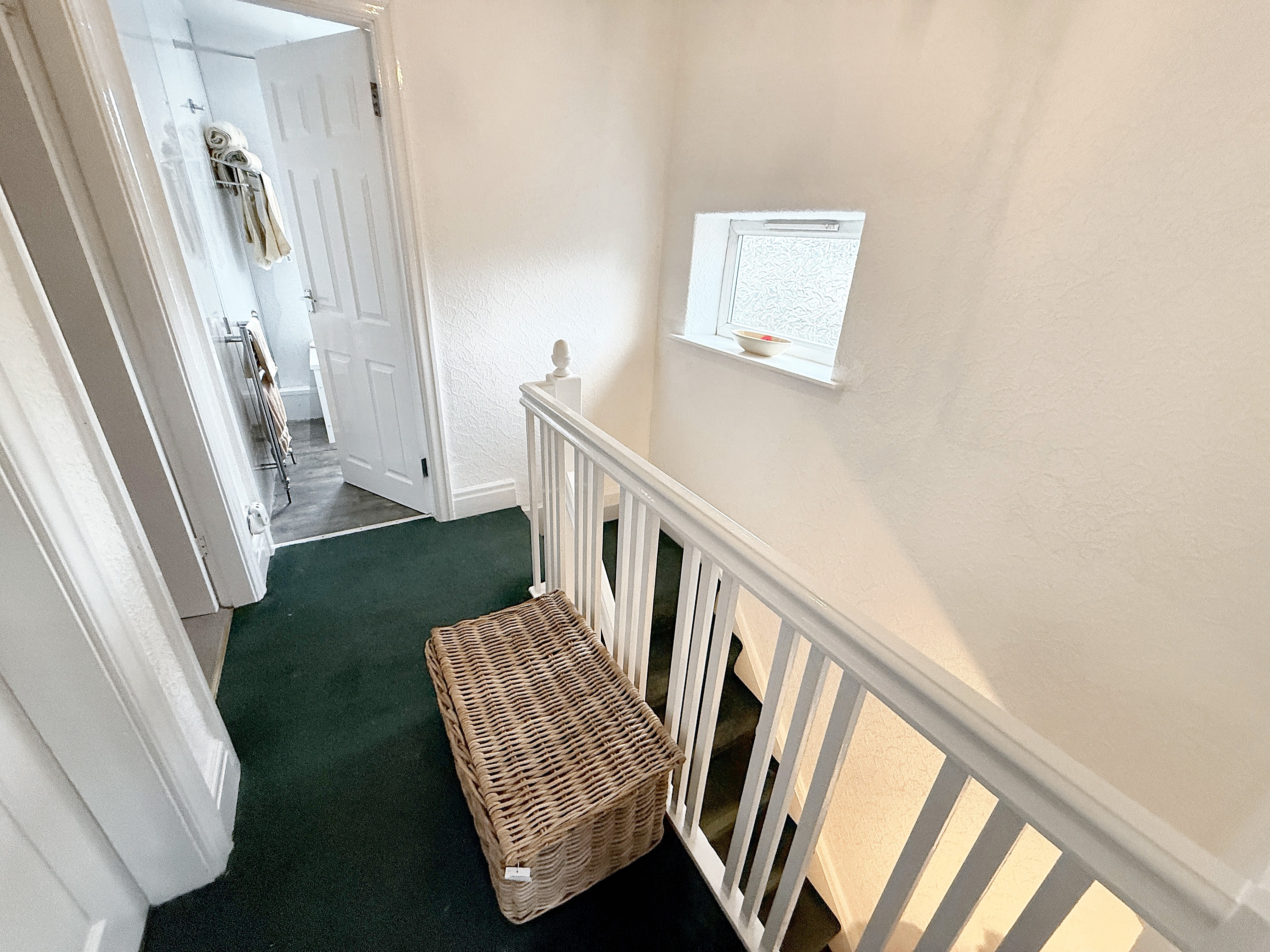 Upstairs, the property offers three well-proportioned bedrooms. The principal and second bedrooms benefit from fitted wardrobes, providing ample storage and helping to keep the rooms organised.