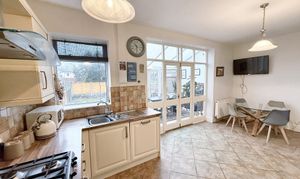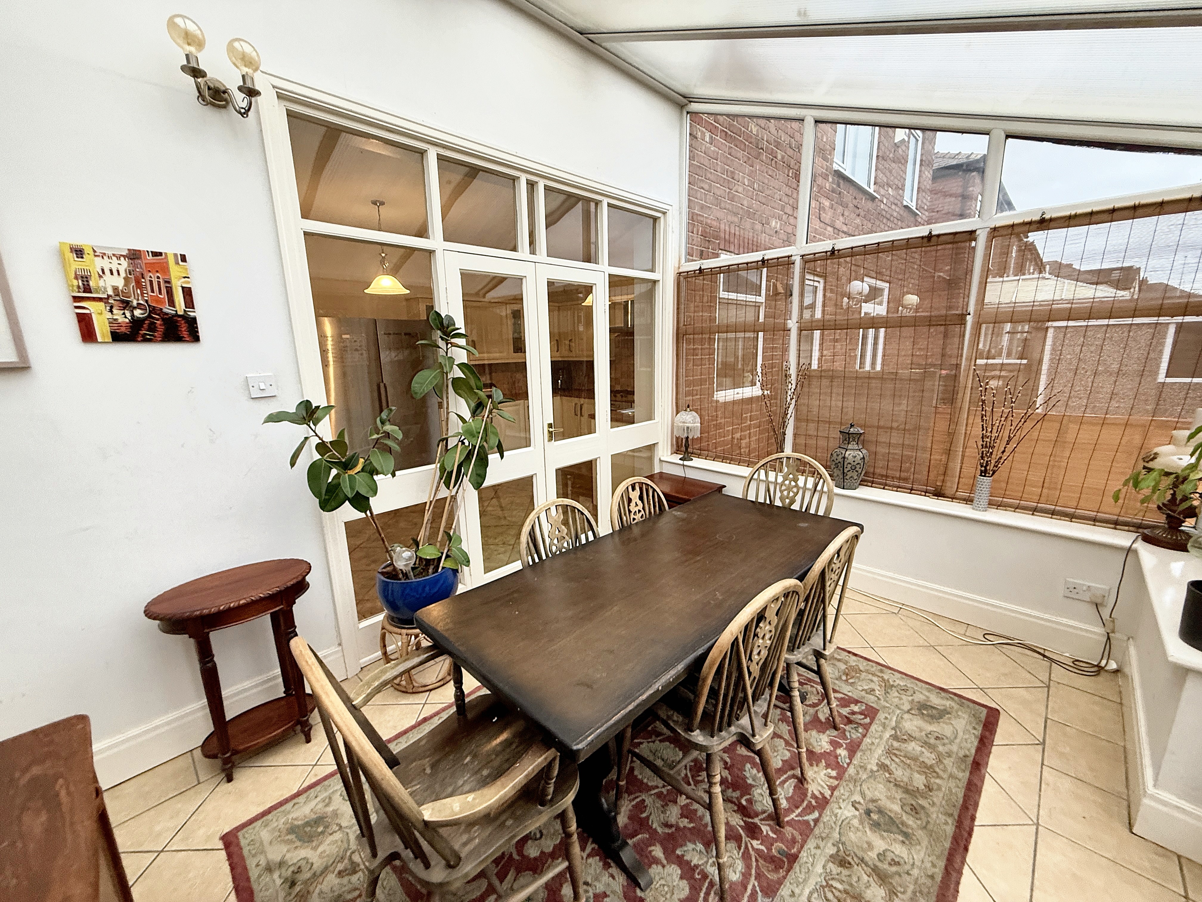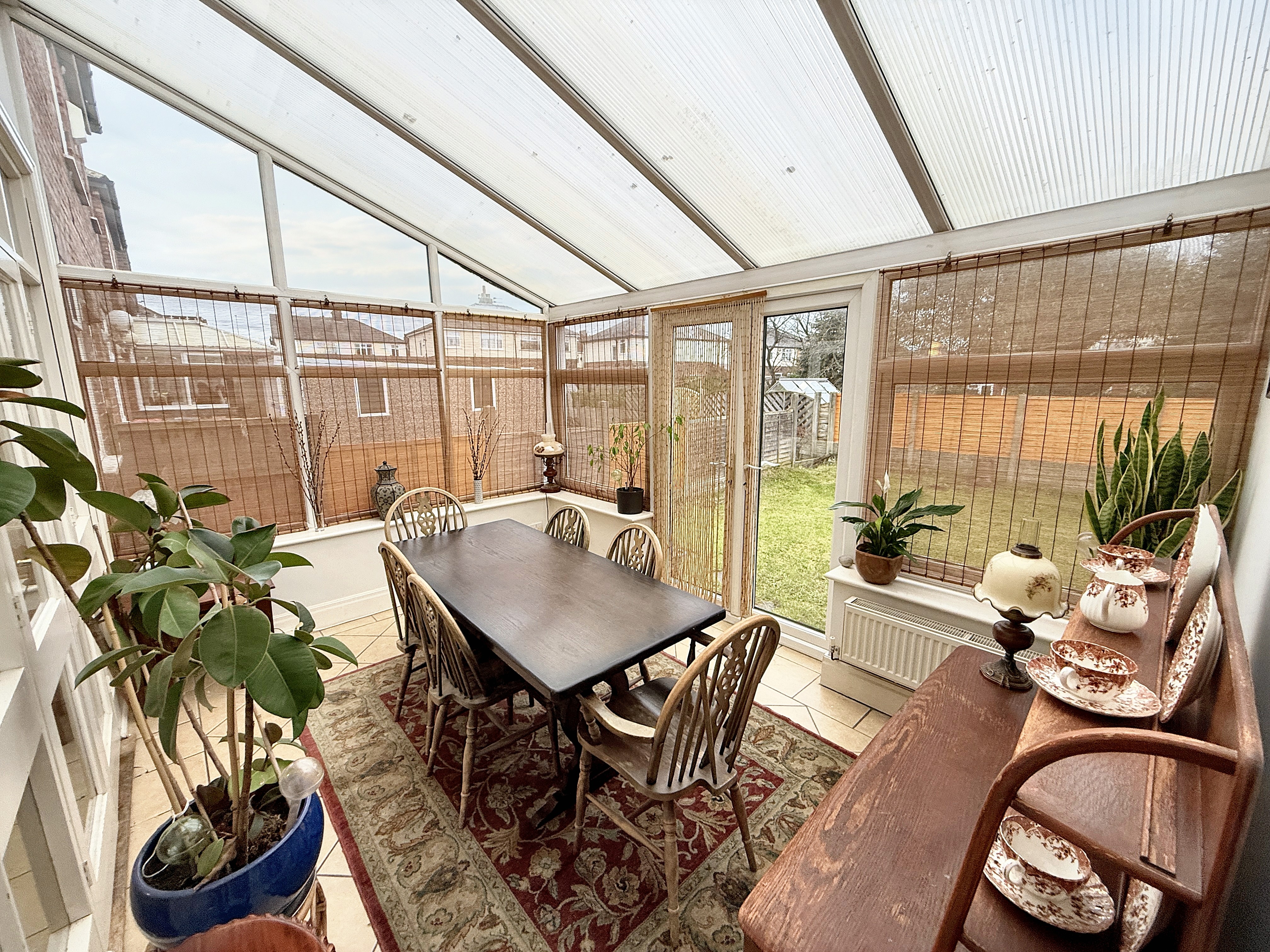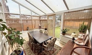 The conservatory, accessed from the kitchen/diner, provides an additional reception space that is filled with natural light. This room is perfect for use as a playroom, reading nook, or a tranquil spot to unwind.