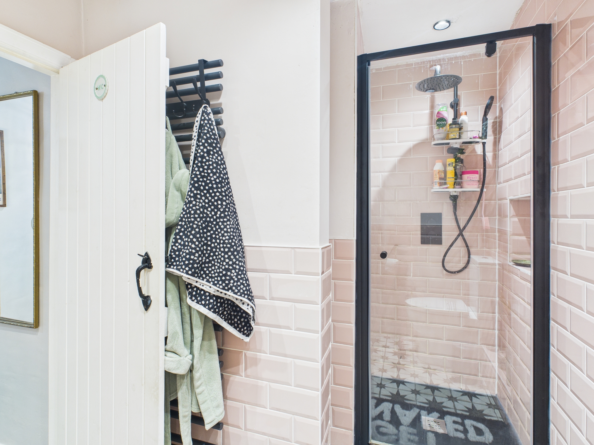 Upstairs there are two bedrooms, with the main bedroom benefitting from built-in wardrobes. The shower room, re-fitted by the current owner, comprises a shower enclosure, wash basin and a W.C.
