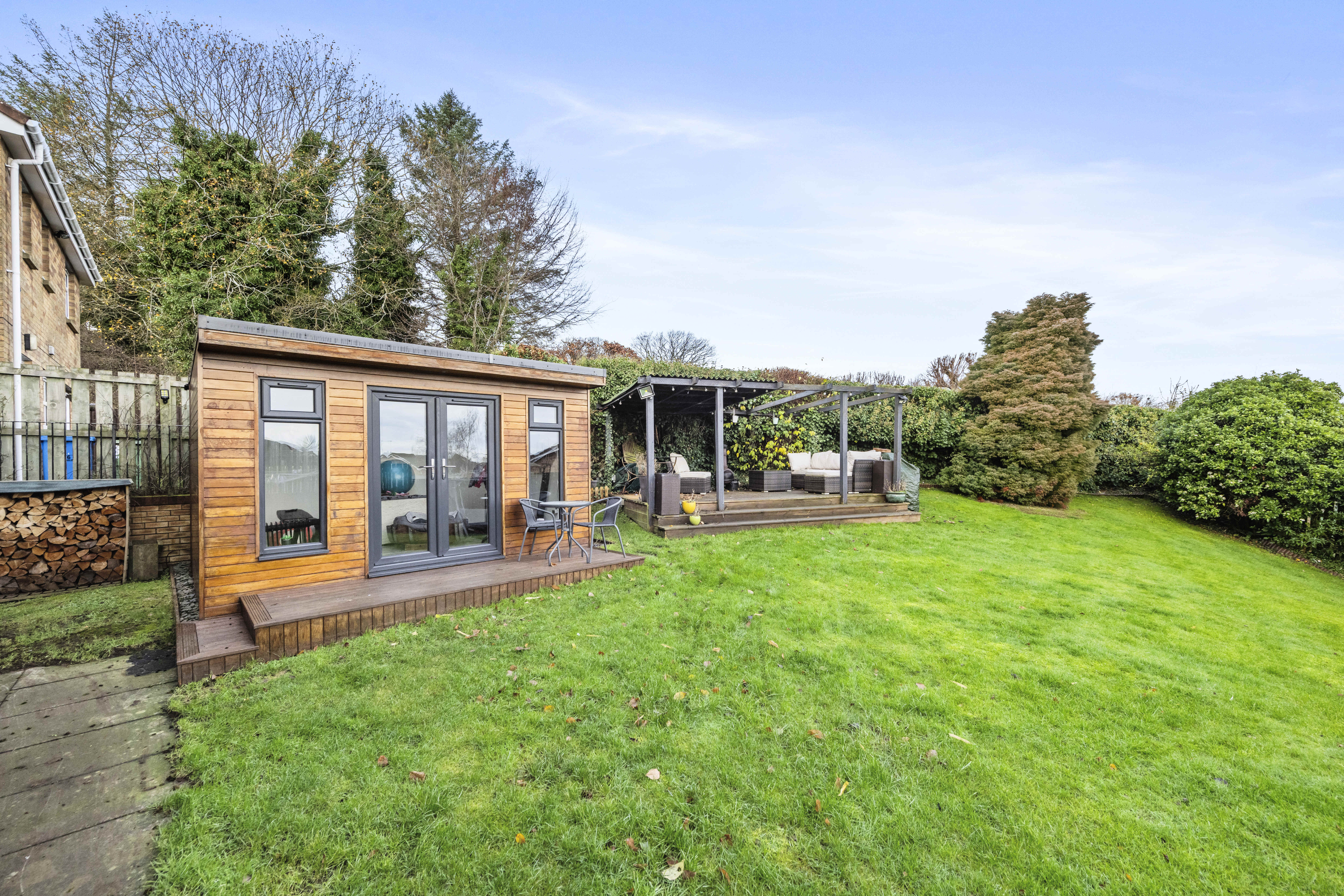 This beautifully presented six bedroom detached house offers spacious and versatile accommodation, ideal for modern family living. Set within a highly desirable locale, the property spans three levels, providing flexible living options to suit a variety of needs. The heart of the home is the high gloss open plan kitchen and dining area, which features a stylish breakfasting island, perfect for both casual meals and entertaining. The rear facing living area benefits from a charming log burner, creating a cosy atmosphere for relaxing evenings. The principle bedroom comes complete with a contemporary en-suite, while all six bedrooms are generously proportioned doubles, ensuring ample space for family and guests. Additional features include a sizeable studio pod located in the fully enclosed rear garden, offering a fantastic opportunity for a home office, gym or creative space. The property also benefits from a garage and driveway, providing convenient off-street parking. Located just a short distance from Uphall Train Station, this home offers excellent transport links for commuters.