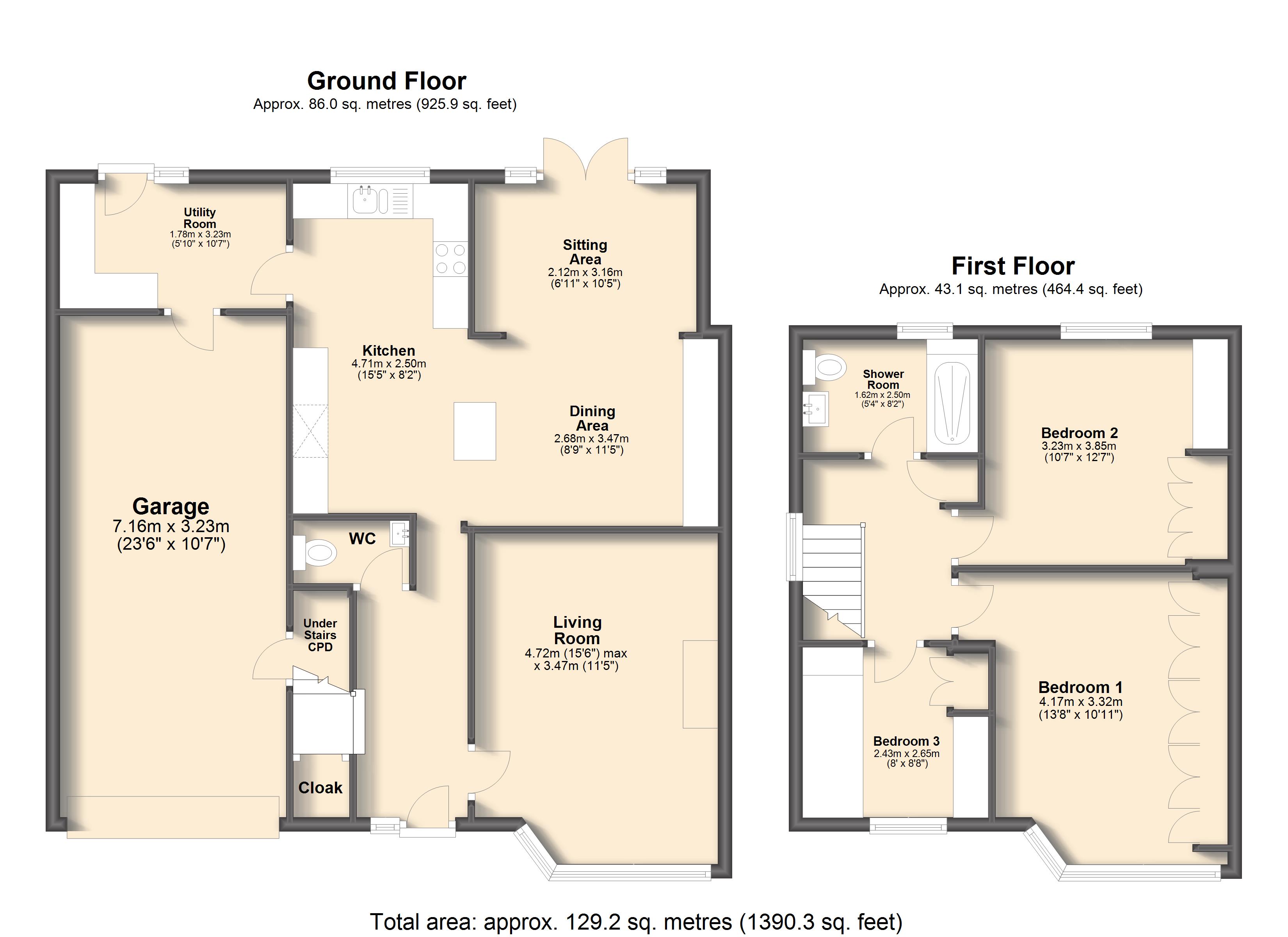A spacious bay-windowed living room provides a further reception space, ideal for family gatherings or quiet evenings at home, giving the ground floor both flexibility and charm. A ground-floor W/C completes the layout.