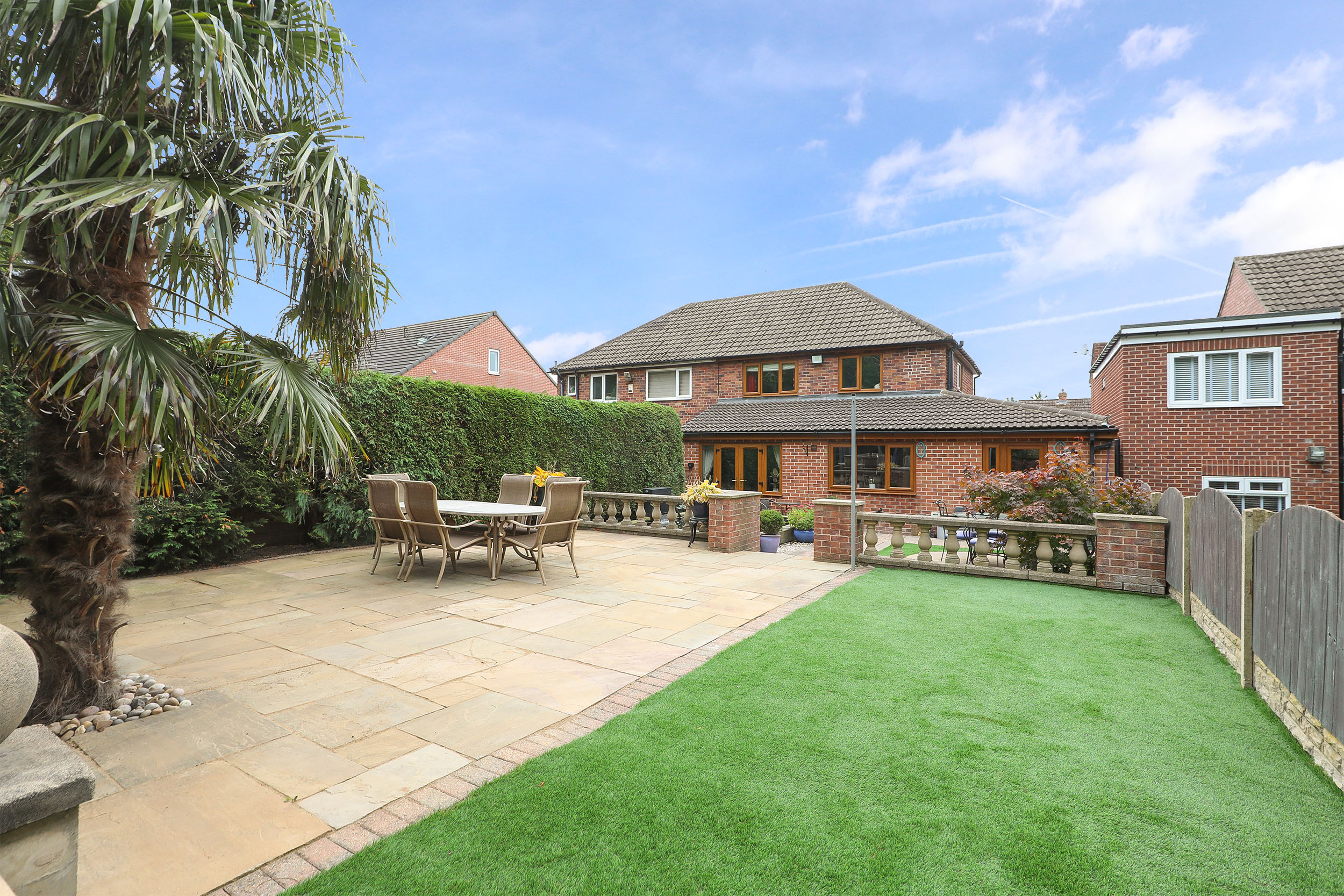 Externally, the rear garden is a true highlight. Beautifully landscaped with low-maintenance planting and an emphasis on privacy, it offers a superb outdoor retreat. Designed for relaxation and entertaining, the garden features a fabulous pond, a summerhouse, and multiple seating areas to enjoy throughout the seasons. To the front, driveway parking and an integrated garage provide convenience and practicality.