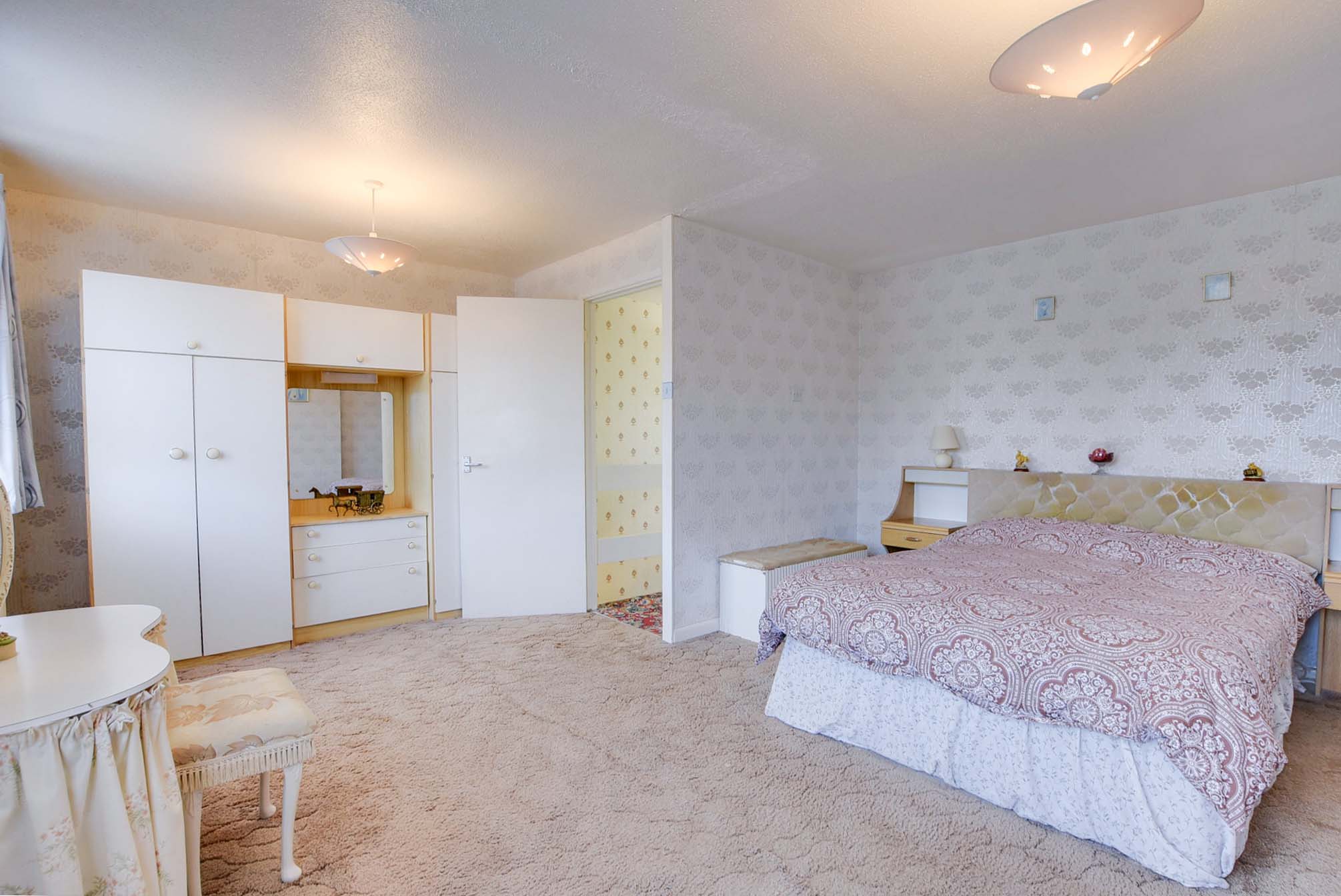 5.15m narrows to 3.38m to form the L-Shape. This L-shaped bedroom was formerly two bedrooms and has been convert to one larger bedroom. With two double glazed windows to the front elevation and two radiators.