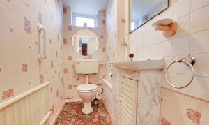 Double glazed window to the front elevation, WC, wash hand basin with cupboard under and a radiator.