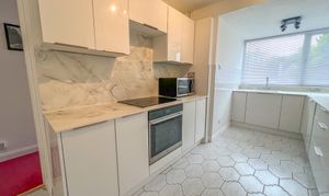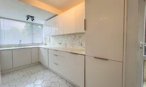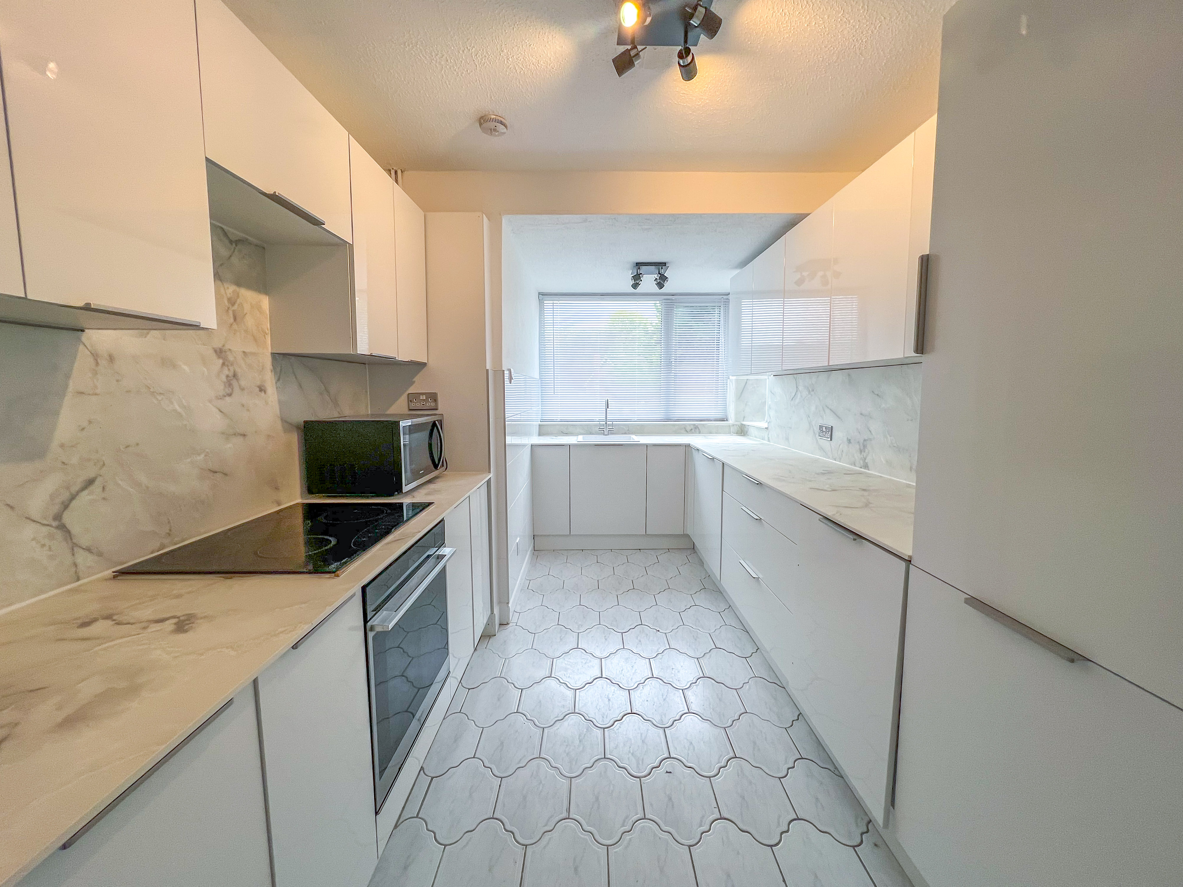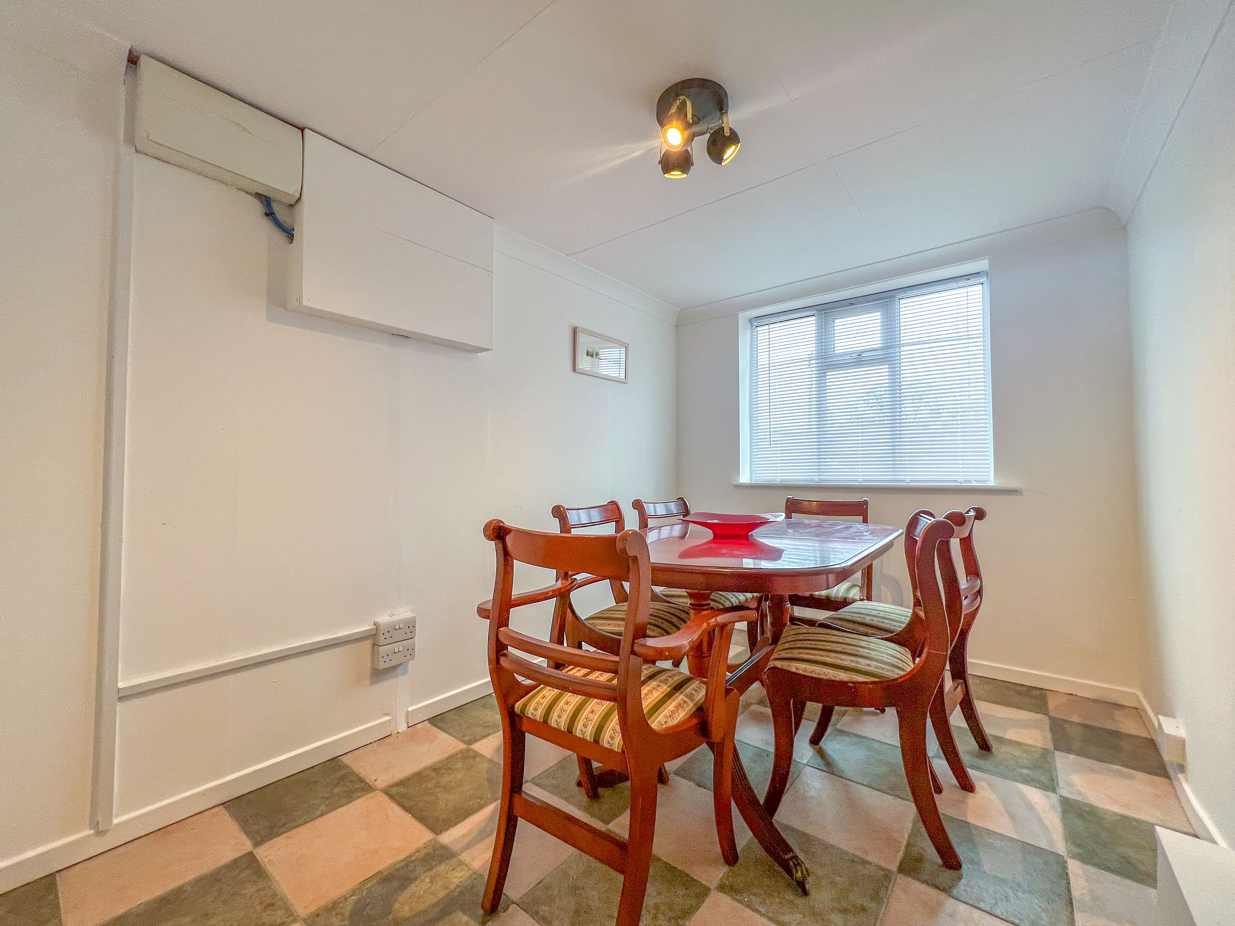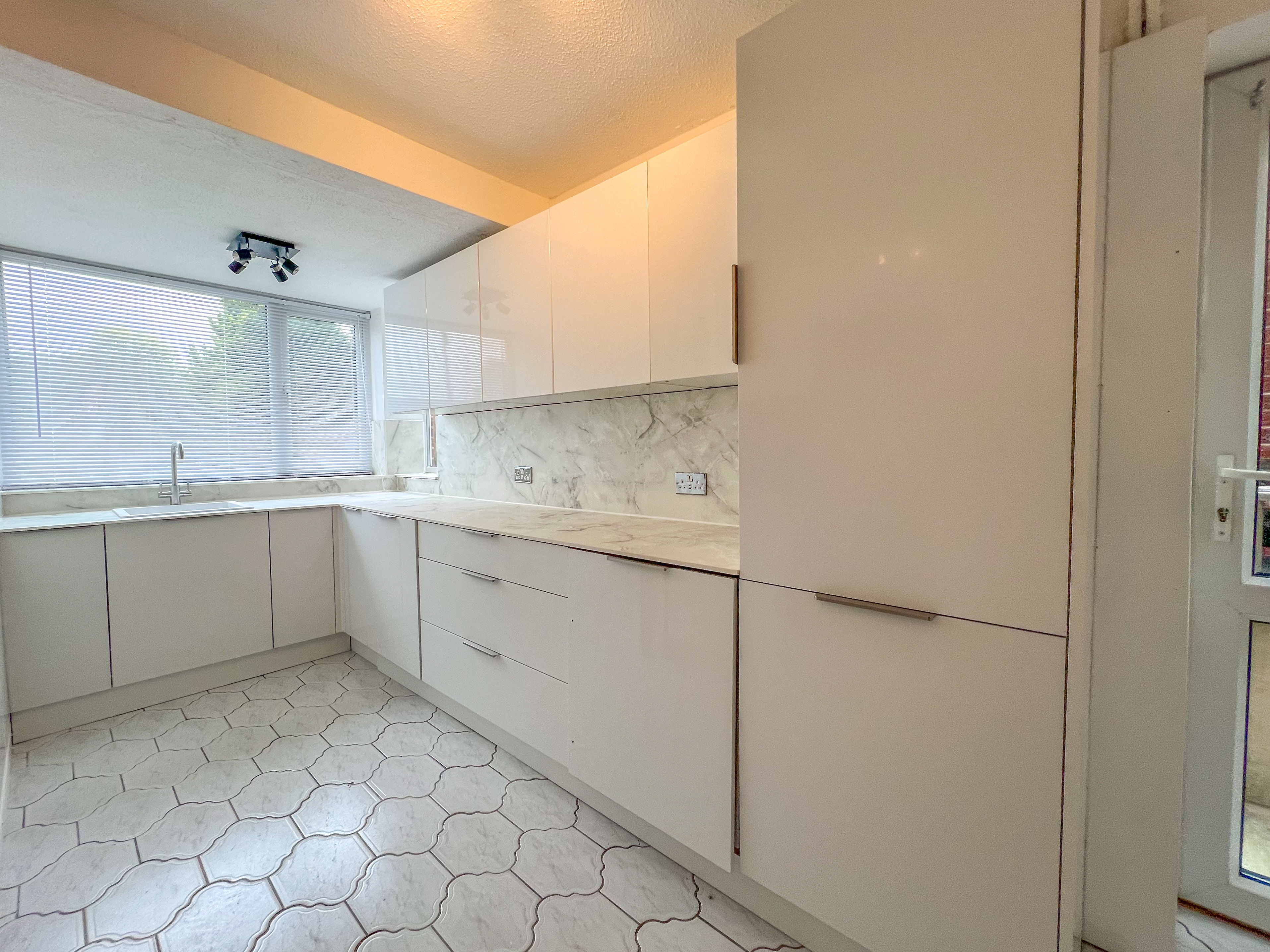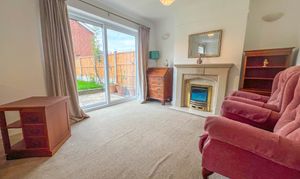 Step inside to a welcoming hallway that flows seamlessly to the stairs rising to the first-floor landing. The refitted kitchen at the front of the home is a true highlight, combining style and functionality, ideal for creating family meals or entertaining friends. Adjacent, the separate dining room offers a versatile space for everything from casual breakfasts to elegant dinner parties. At the rear, the spacious lounge becomes the heart of the home, featuring sliding patio doors that bathe the room in natural light and provide effortless access to the private garden.