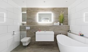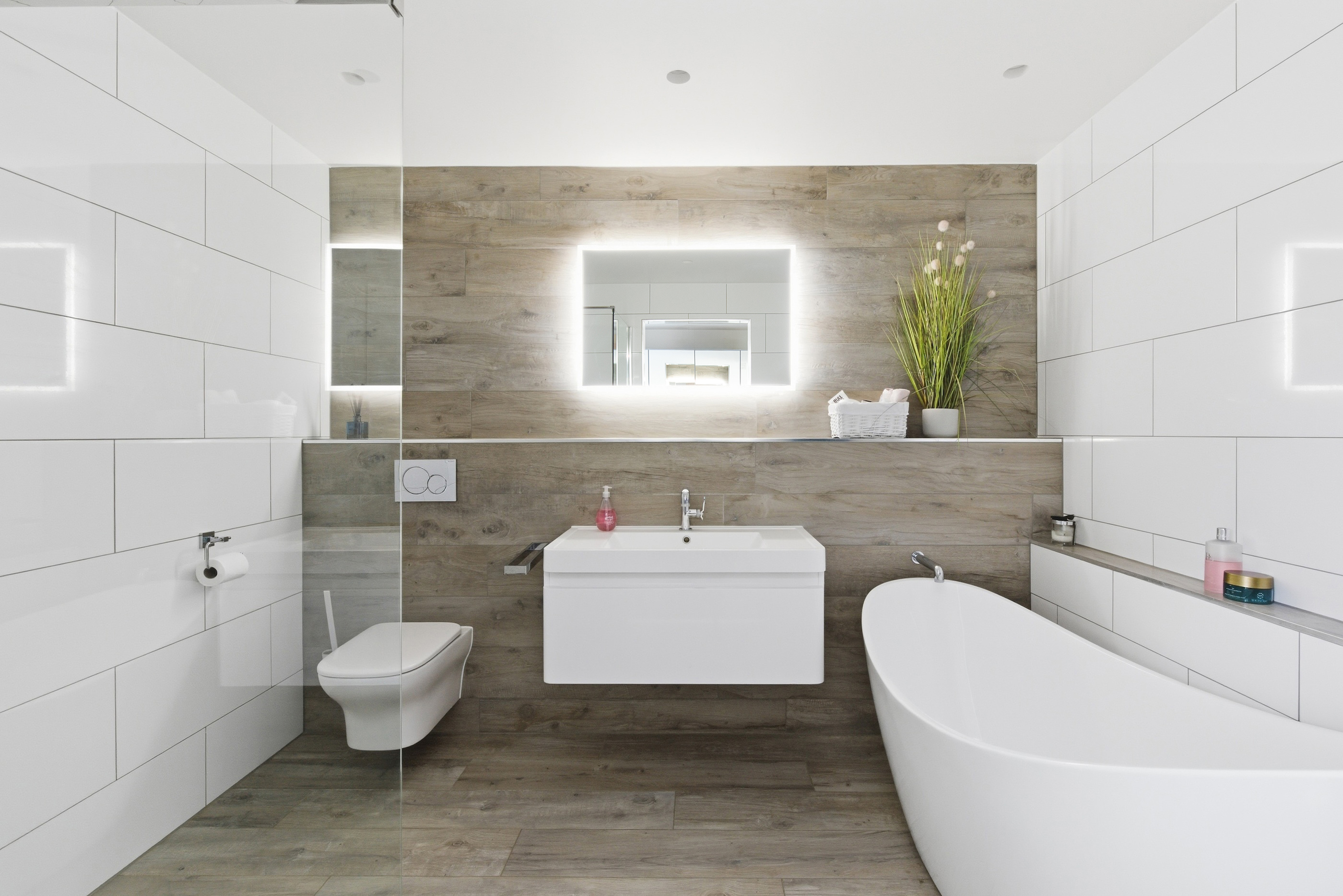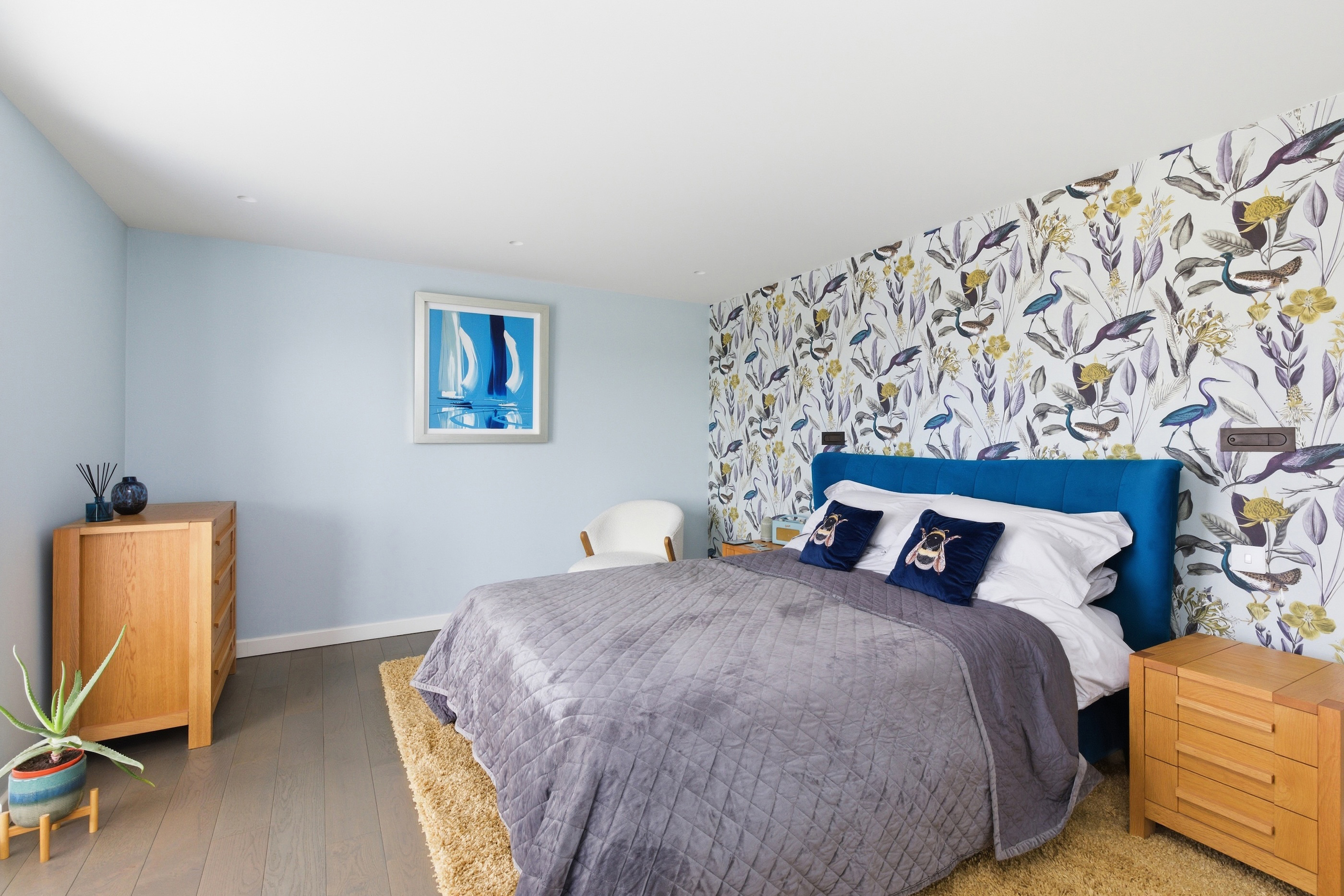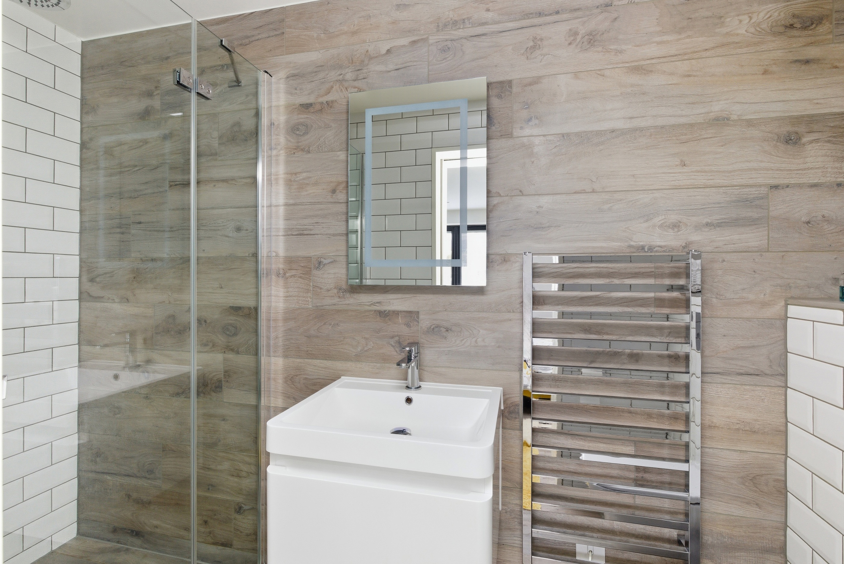 Both bedrooms are generous double rooms, each with bespoke en-suite facilities. The principal suite is particularly impressive, with west-facing glazed doors enjoying a panoramic outlook, a dressing room with fitted wardrobes, and a luxurious en-suite with freestanding bath and wet-room style shower. The second bedroom also benefits from a modern en-suite shower room.