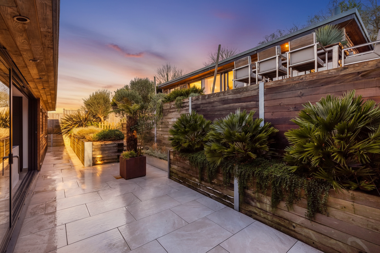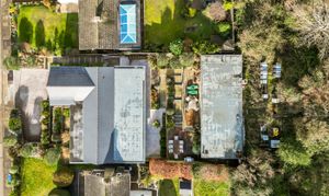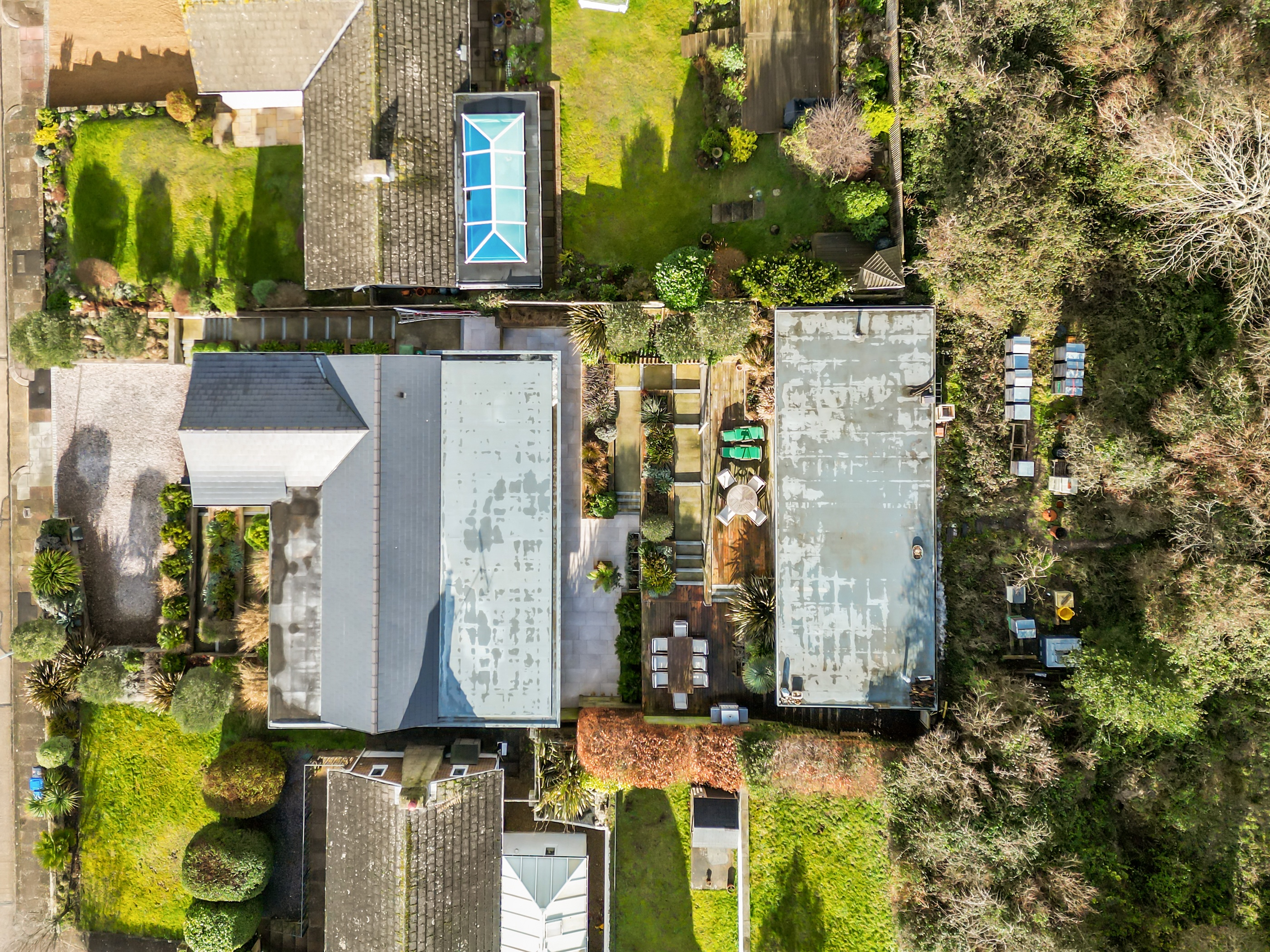 Positioned within the upper garden is a substantial detached outbuilding of approximately 60 sqm, with glazed sliding doors and a partitioned workshop area, ideal for entertaining, home working, or potential ancillary accommodation, subject to obtaining the requisite consents.