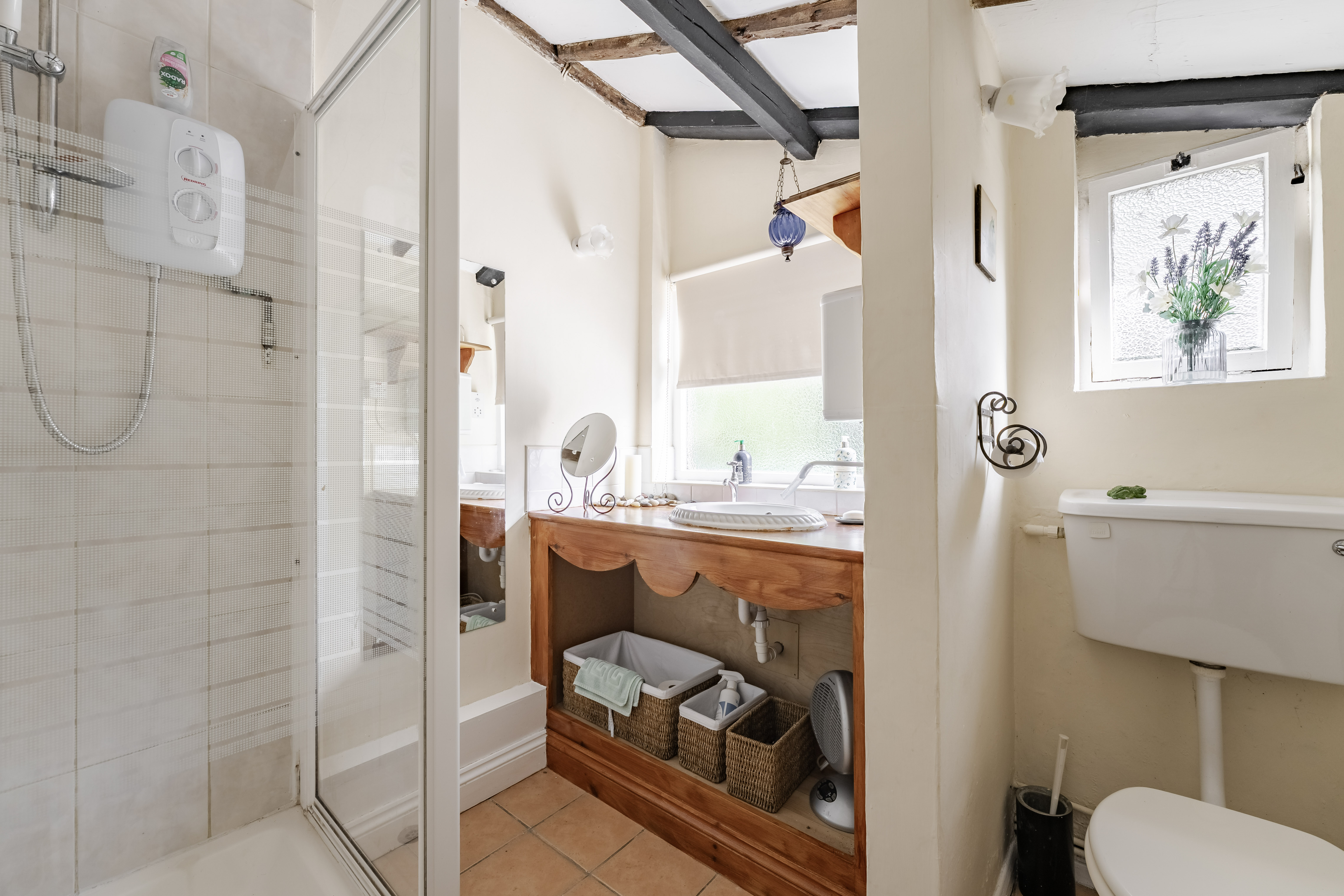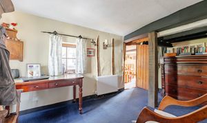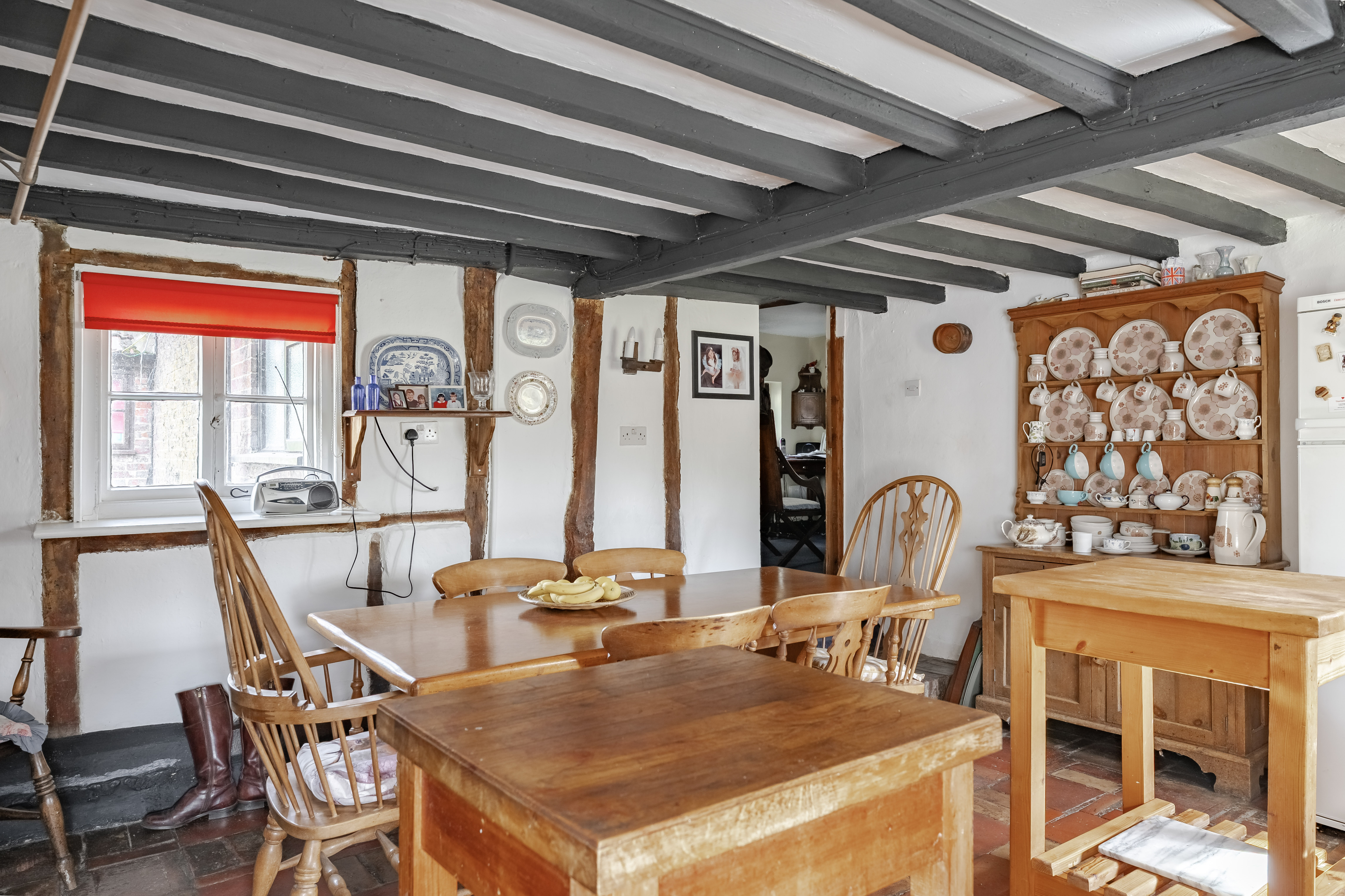 At the heart of the home lies a charming farmhouse kitchen, rich in character with its timber beams and traditional detailing. A retained original bread oven adds a unique historical feature, reflecting the home’s heritage and long-standing role as a place of hospitality.