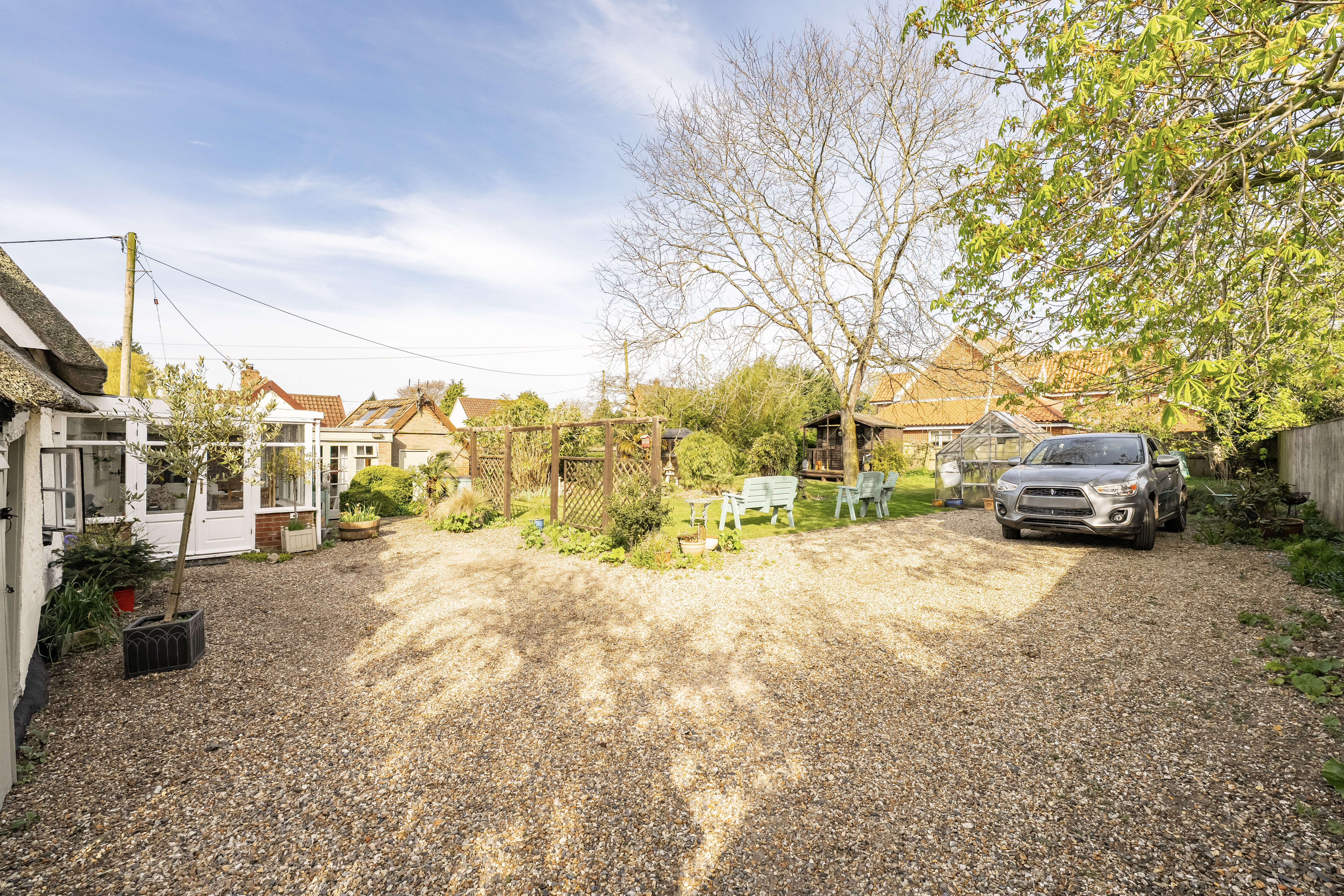 Tucked behind a gently signposted entrance in the heart of Thompson, The Thatched House feels like a hidden countryside retreat waiting to be discovered. Set within a generous, leafy plot, the home unfolds with a sense of quiet magic, where every corner reveals another detail to admire. There is so much character woven throughout that you hardly know where to rest your gaze, beamed ceilings, cosy nooks, and timeless textures all competing for attention. The living spaces invite both lively gatherings and peaceful moments, shifting effortlessly with the rhythm of the day. A sense of history lingers in the air, yet the home remains wonderfully adaptable for modern living. Upstairs and down, its layout offers a delightful balance of privacy and connection. Outside, the gardens wrap around you like a secret, completing this enchanting home with a feeling that is both rare and quietly extraordinary.
