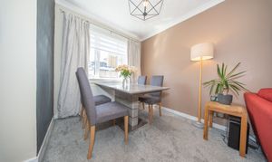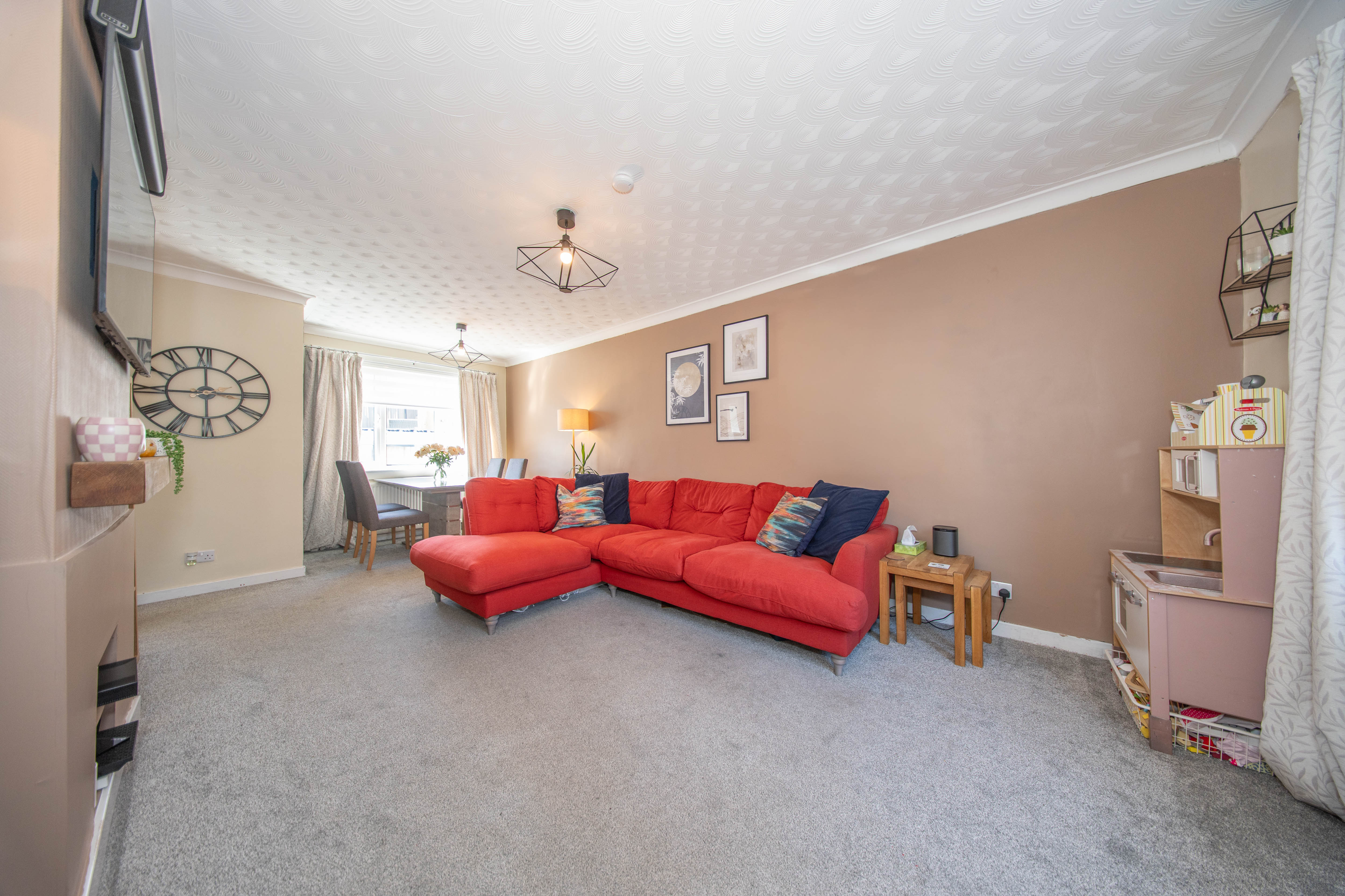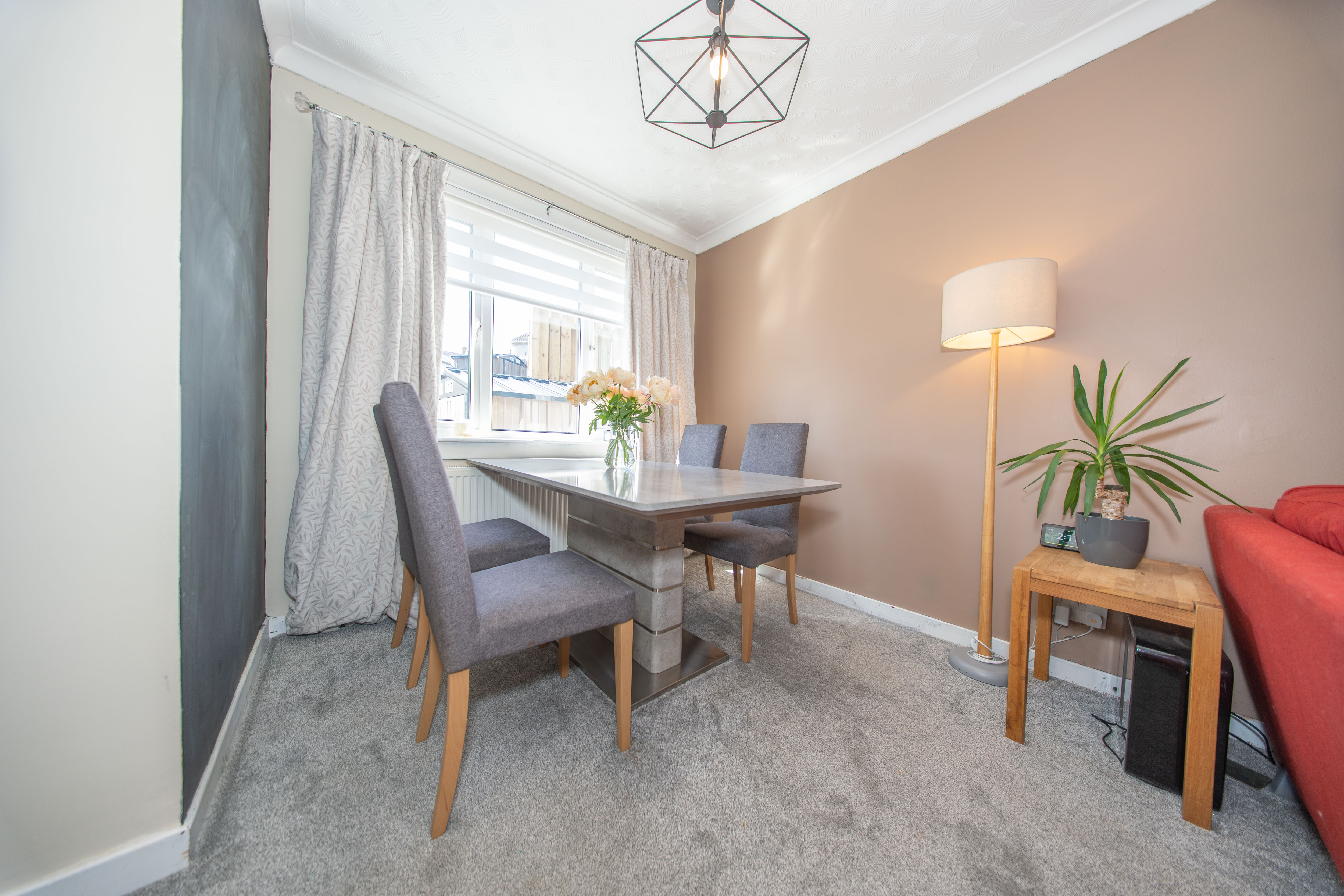 6.600m x 3.620m (21’08” x 11’10”) A bright and generously proportioned room benefiting from dual aspect windows to the front and rear, allowing for excellent natural light throughout the day. The space features carpeted flooring and painted walls, with radiators providing warmth. Two lots of ceiling-mounted lighting and a smoke detector complete this versatile room, ideal for both relaxing and plenty of space for dining.