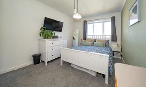 4.011m x 3.055m (13’02” x 10’00”) A generously sized primary bedroom offering a bright yet restful setting, with soft carpeted flooring and a clean, neutral finish throughout. The front-facing window allows for plenty of natural light, enhancing the sense of space. Well-proportioned to comfortably accommodate a range of furniture, the room is complete with a radiator, power points and a ceiling-mounted light, creating an ideal main bedroom retreat.