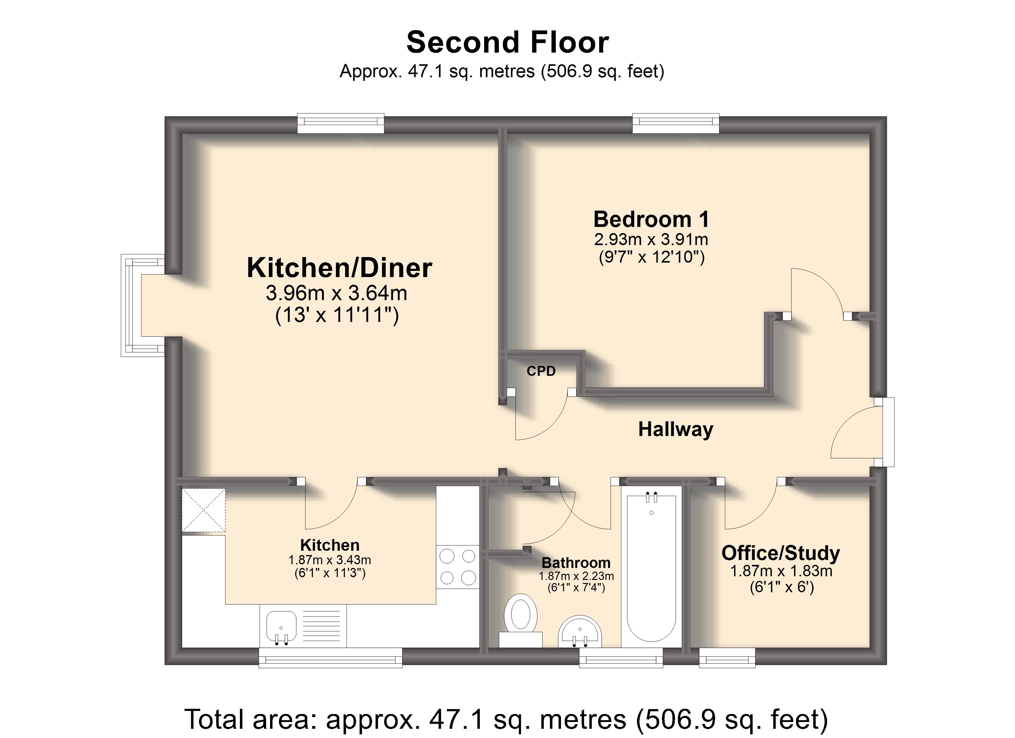 A generous dual-aspect lounge/diner provides ample space alongside a modern fitted kitchen with appliances. The double bedroom has room for fitted or stand-alone furniture and you have the flexibility to use the second room as a study/office space if you're looking to work from home. A three-piece bathroom completes the layout. Communal gardens surround the development and you have a number of local shops/amenities on the doorstep. Transport links are excellent with key bus routes passing through at the end of the road and there are plenty of green spaces to enjoy.