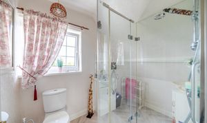 Upstairs, you’ll find a large double bedroom with extensive built-in storage and a versatile single bedroom that could serve as a home office. Both are served by the modern family bathroom, complete with a walk-in shower.