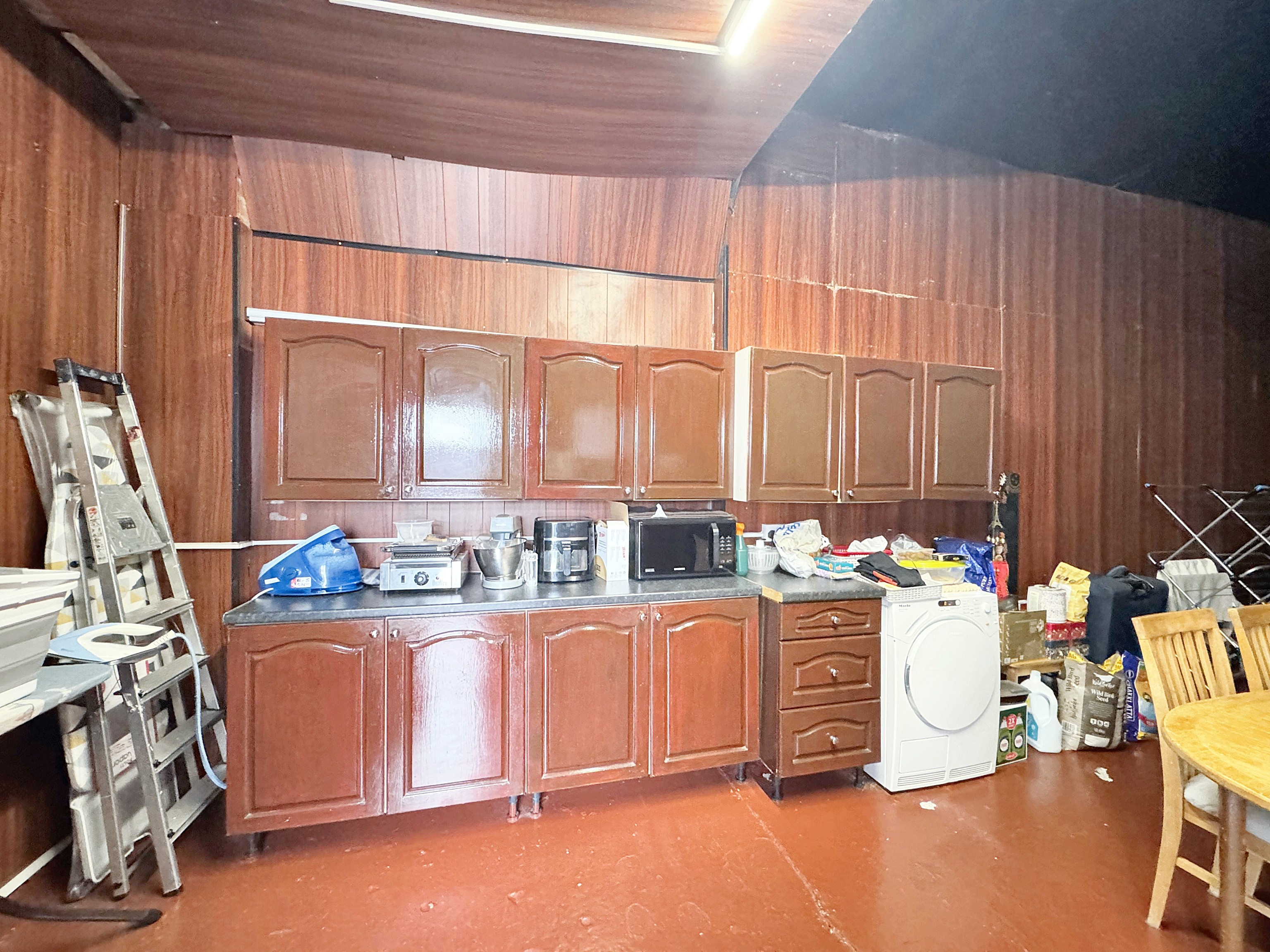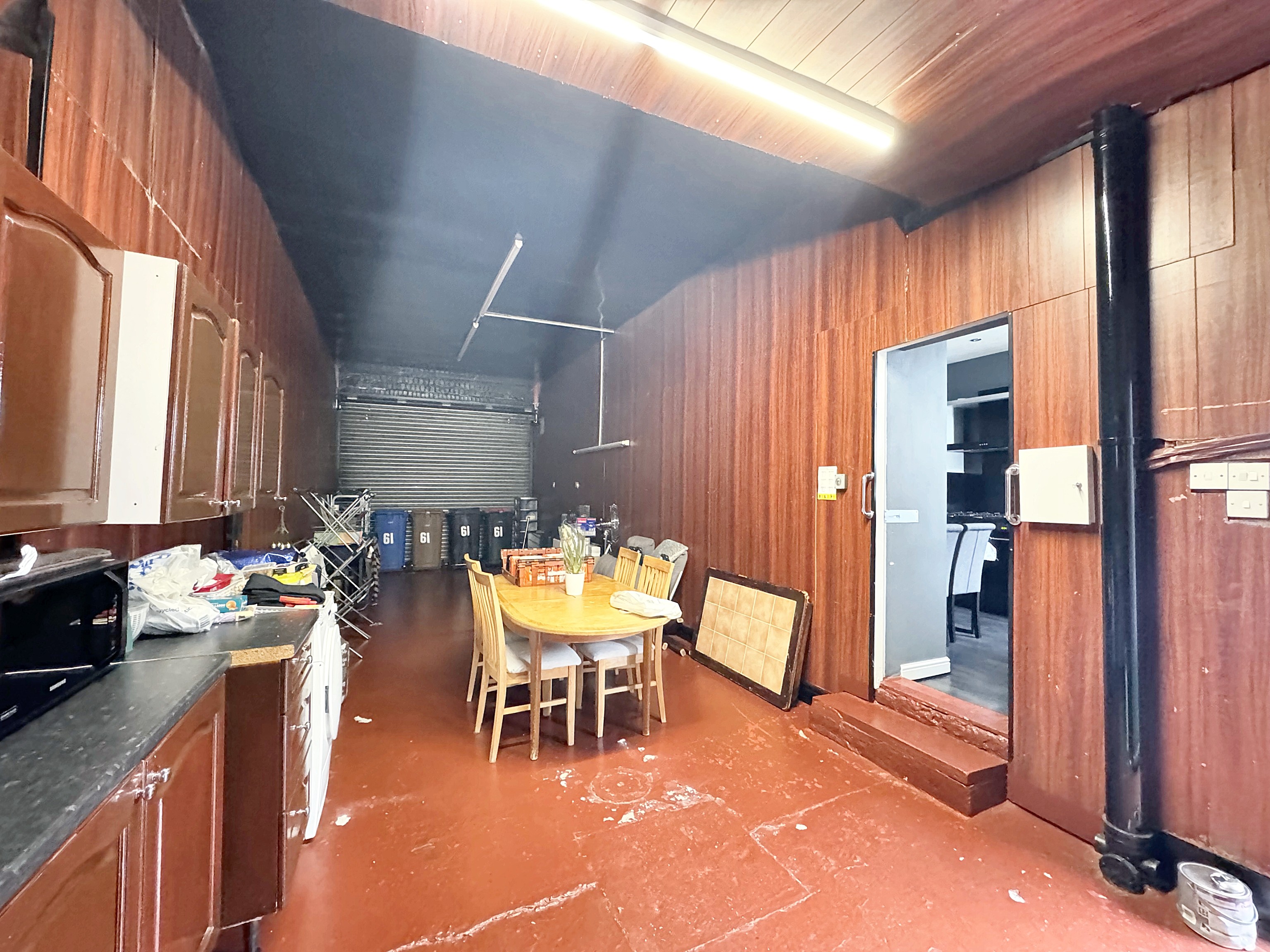 Electric door to the front elevation. Kitchen units fitted. Side door to the kitchen of the main hour and side door to the back yard. Rear door through to: