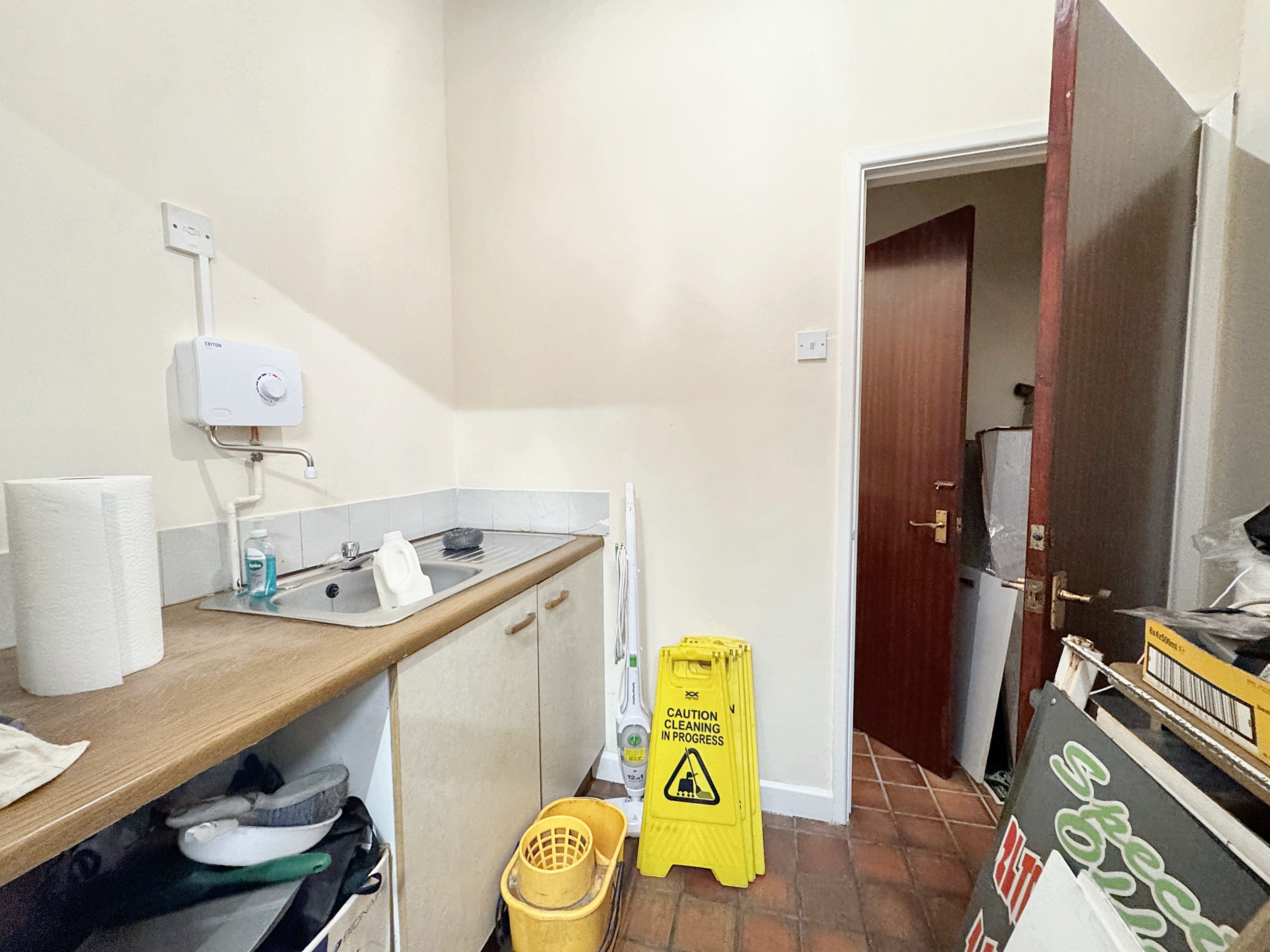 Sink to the rear. Internal door through to: