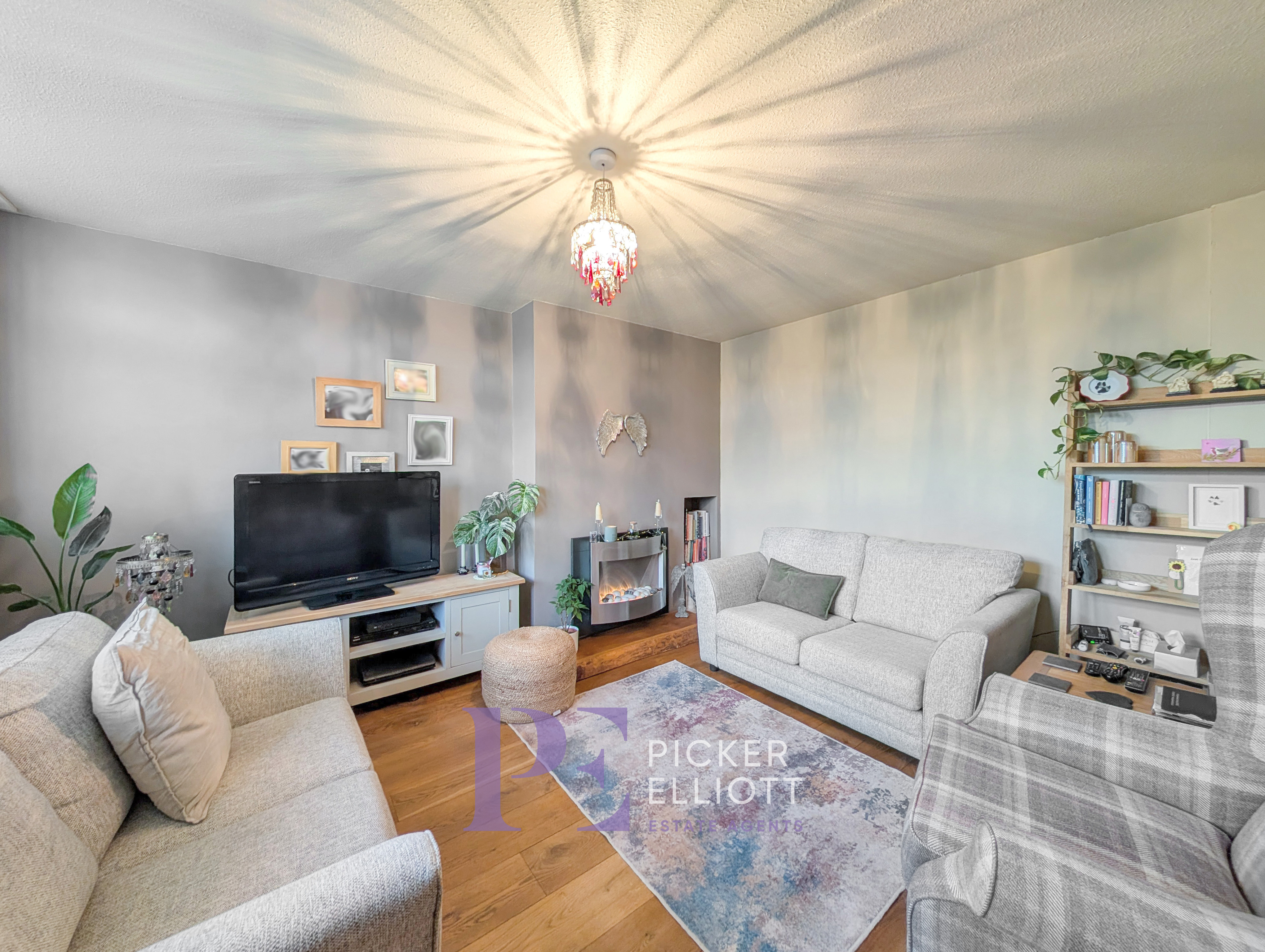 Having real wood flooring, a central heating radiator, feature electric fireplace and a UPVC double glazed bow window to the front.