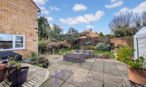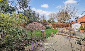A spacious garden, mainly laid to lawn with a large paved patio area. Timber fencing to all boundaries, and gated access to the front.