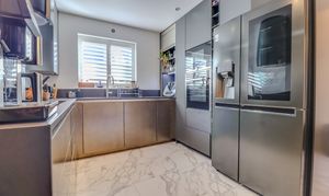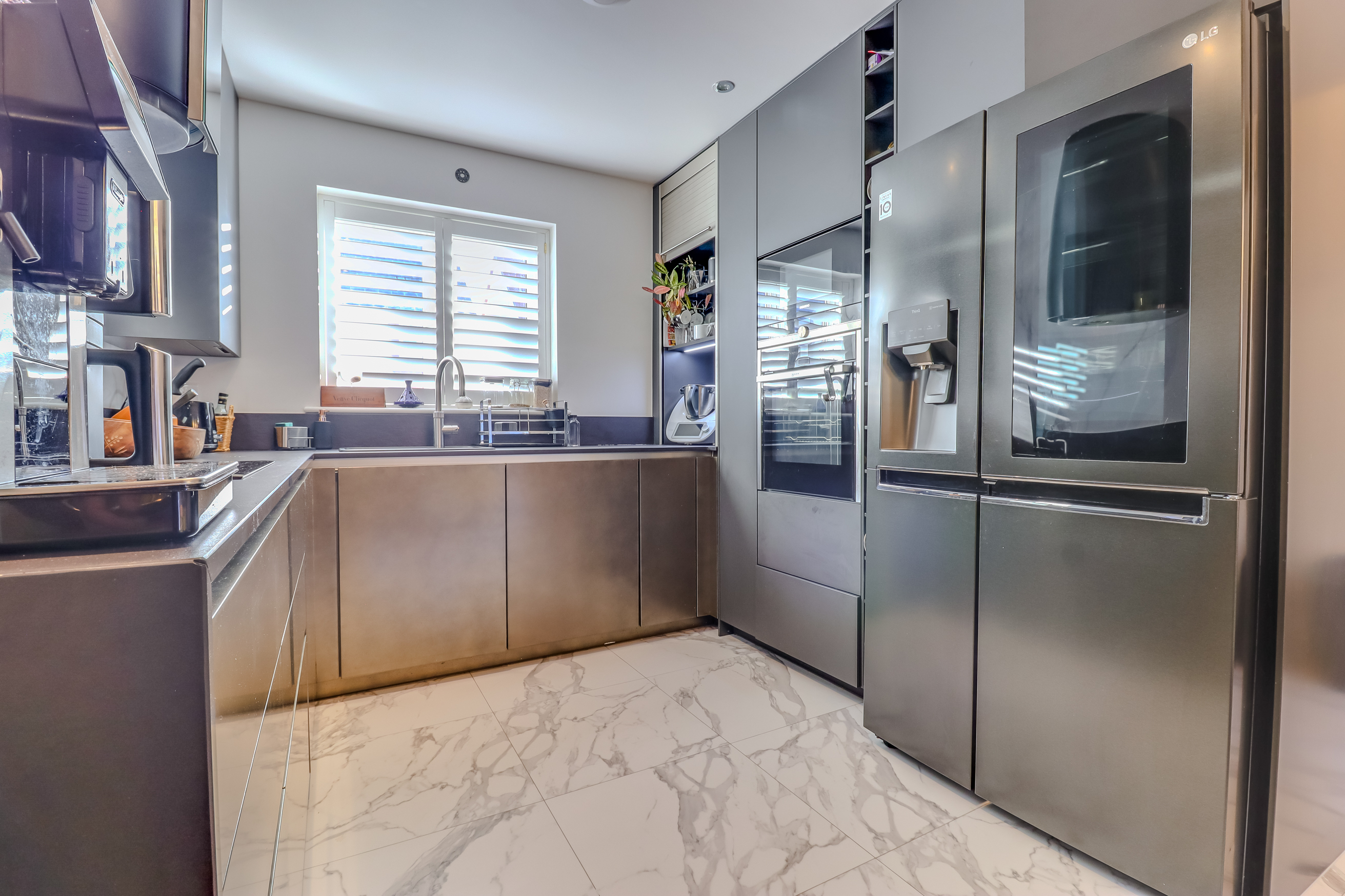 The internal layout comprises an initial entrance hallway with downstairs WC off. The ground floor features a wonderful open plan living space with the aforementioned kitchen area taking centre stage. French doors open out to the fantastic pergola which can be fully enclosed. (Available by separate negotiation).