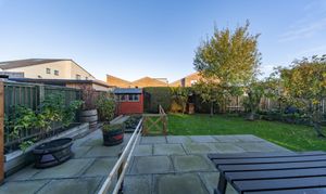 The generous corner garden offers a wonderful outdoor retreat, combining space, privacy, and versatility. Predominantly laid to lawn and enhanced by mature trees and planted beds, it creates a peaceful, green setting. A paved patio area beside the house provides the perfect spot for outdoor dining or relaxation, while established vegetable beds and a wooden shed, included in the sale, add practical appeal. Fully enclosed by fencing with gated rear access, this thoughtfully designed garden is ideal for family living, entertaining, or simply unwinding in the fresh air.