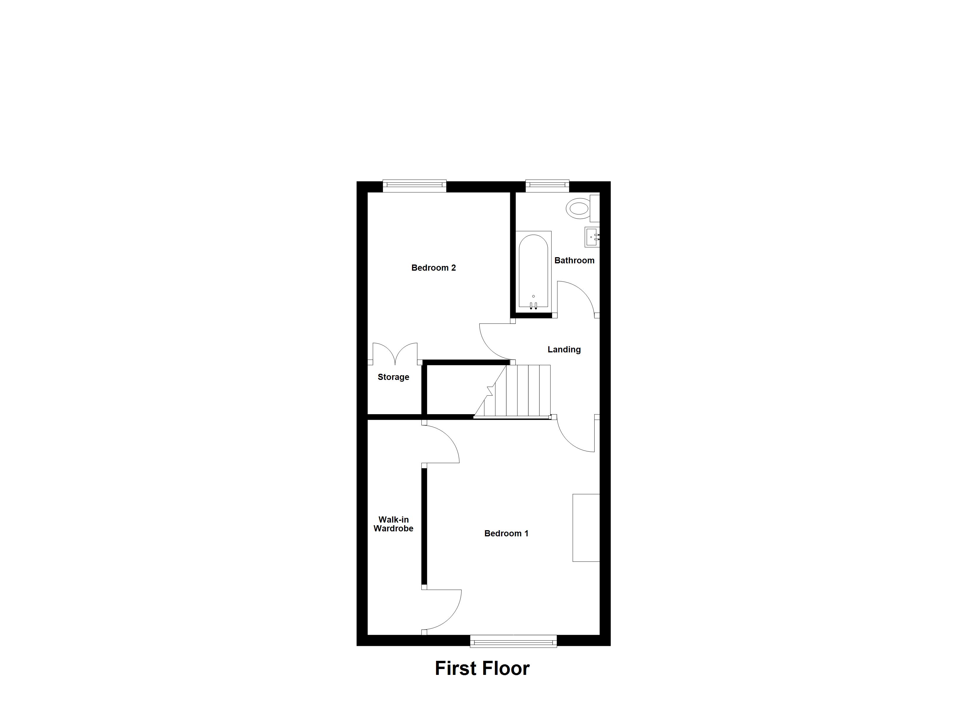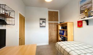 The property features a spacious open plan kitchen and dining area, providing a modern and sociable space for entertaining or family meals. The lounge is bright and welcoming, creating a comfortable setting for relaxation. Upstairs, the main bedroom boasts a walk-in wardrobe area, offering ample storage and a touch of luxury, while the second bedroom is ideal for a child’s room, guest space, or home office. The family bathroom is fitted with a three-piece suite and neutral décor.