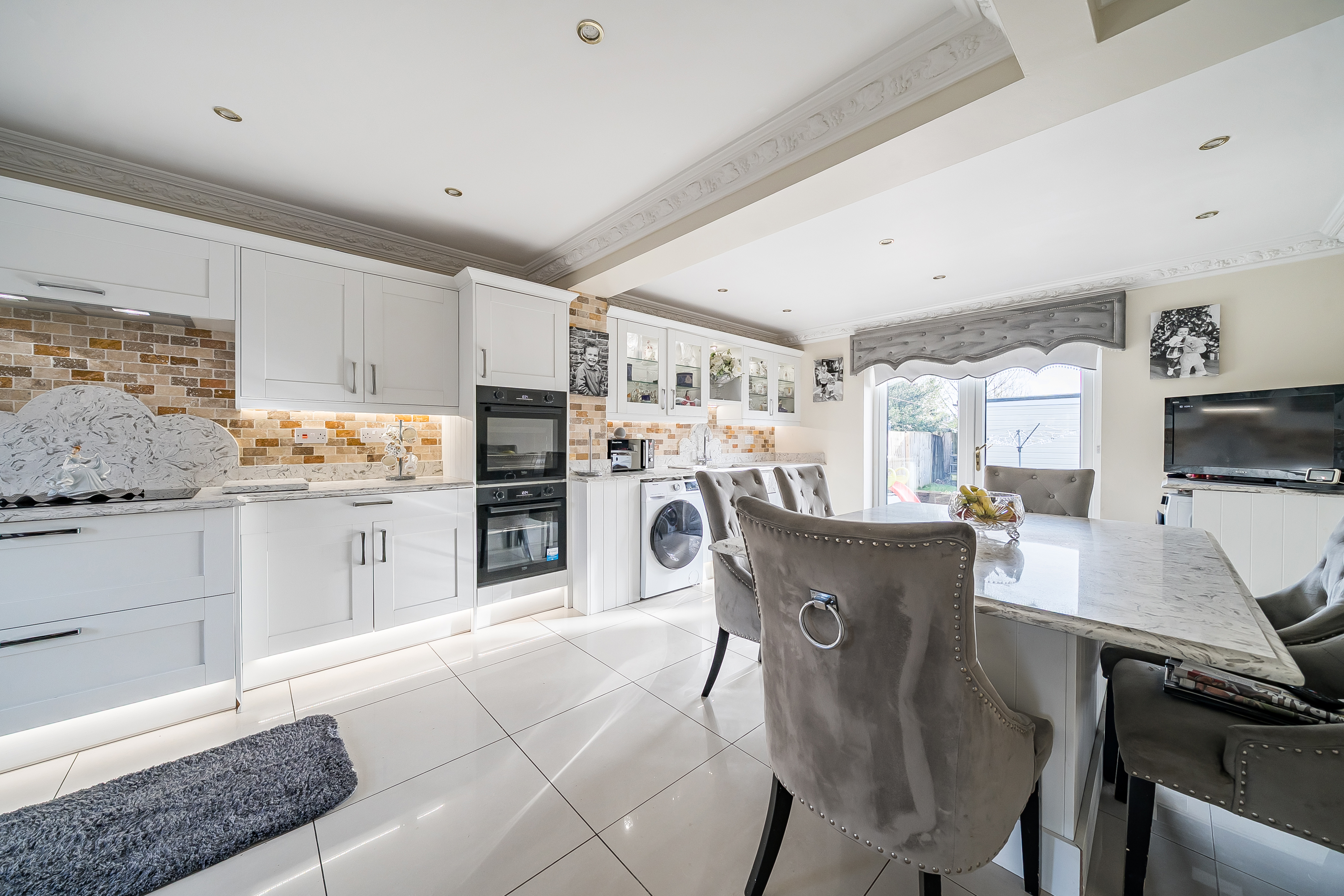 This beautifully presented four bedroom semi detached house offers an exceptional opportunity for families seeking a spacious and stylish home in move-in condition. Upon entering, you are greeted by a welcoming hallway that leads to a generously proportioned living room, finished in very good decorative order and featuring ample natural light through UPVC double glazed windows. The heart of the home is the stunning refitted kitchen diner, thoughtfully designed with contemporary units, integrated appliances, and plenty of space for both dining and entertaining. Upstairs, you will find four well-sized bedrooms, each tastefully decorated and ideal for family living or versatile use as a home office or study. The refitted luxury bathroom provides a serene retreat, fitted with high quality fixtures and elegant tiling for a touch of indulgence. Practicality is ensured with gas central heating throughout the property, creating a warm and comfortable environment all year round. Additional features include a versatile cabin or annexe (perfect for use as a guest suite, home office, or hobby room), and a driveway that provides ample off road parking for multiple vehicles. This property is offered with no onward chain, making it an attractive proposition for buyers looking to move quickly. With its combination of stylish interiors, modern conveniences, and flexible accommodation, this four bedroom family home is a rare find and must be viewed to be fully appreciated!