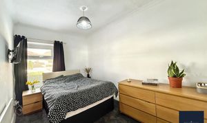 Three well-proportioned bedrooms offer flexibility, with ample storage solutions all benefiting from tasteful modern décor and natural light. The home is further complemented by a contemporary bathroom, featuring stylish tiled flooring, recessed lighting, and decorative shelving for a sleek, functional finish.