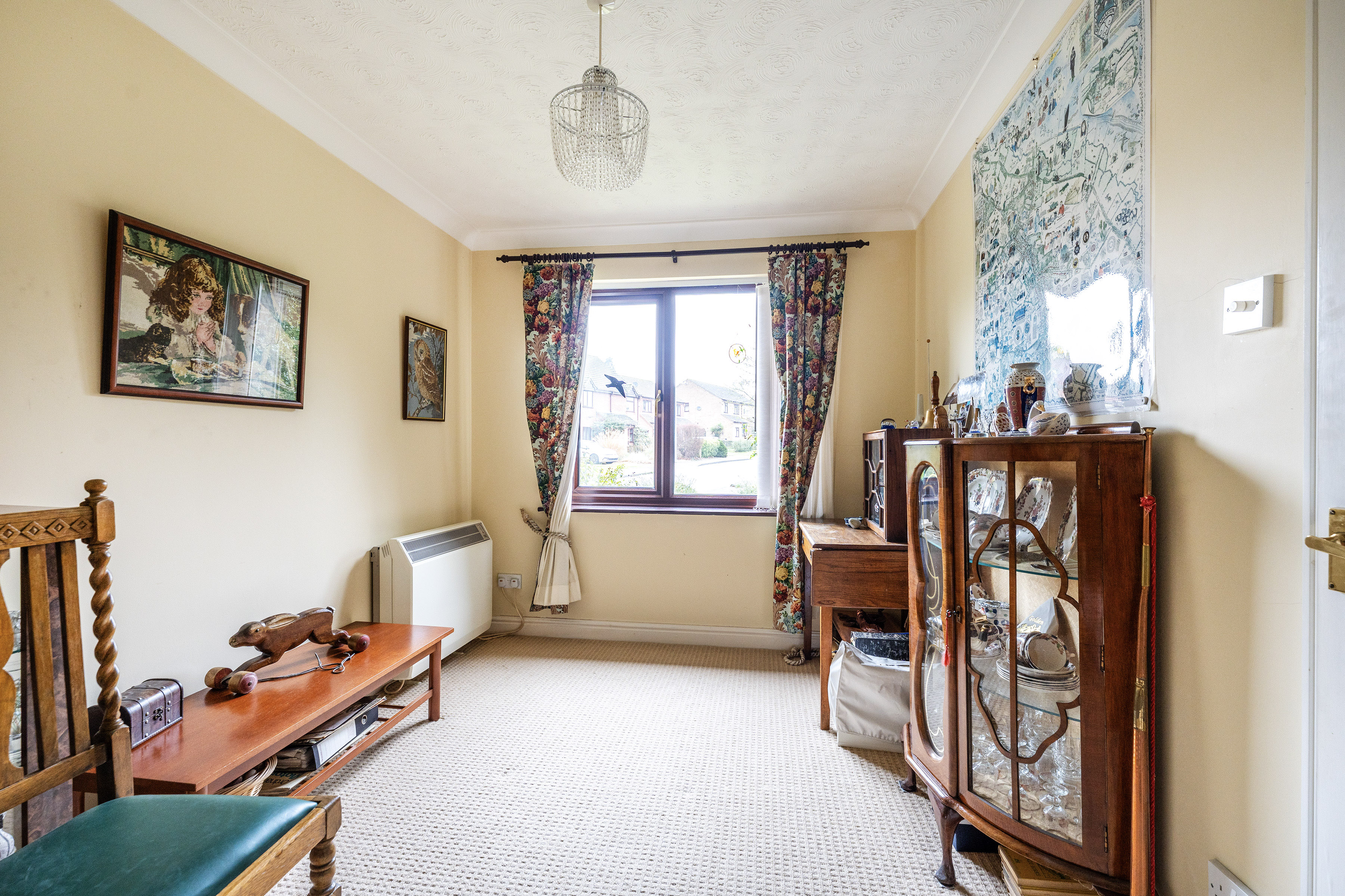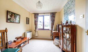 The living room is generous and comfortable, anchored by a traditional feature fireplace that is electric and filled with natural light from a large front-facing window, an easy space for relaxing or entertaining. Adjacent to this is a versatile study or home office, which could readily serve as an additional bedroom if required.