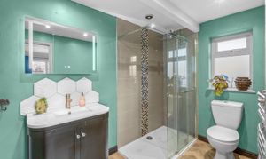 The contemporary fitted kitchen is finished with modern cabinetry, quality work surfaces, and ample storage, making it ideal for family cooking and hosting. Each of the five well-proportioned bedrooms provides versatility for family living, guest accommodation, or home office arrangements, while the principal bedroom enjoys the added luxury of a stylish en-suite. The modern bathroom suite is presented in clean, neutral tones with quality sanitaryware and functional fittings, complemented by a practical utility/WC for added convenience.