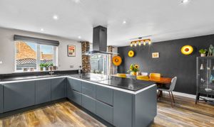 - Contemporary fitted kitchen finished with modern cabinetry, quality work surfaces, and practical storage, ideal for family cooking and hosting