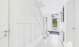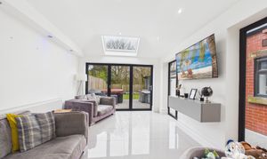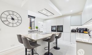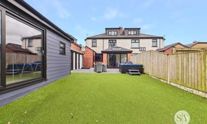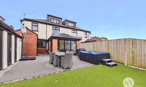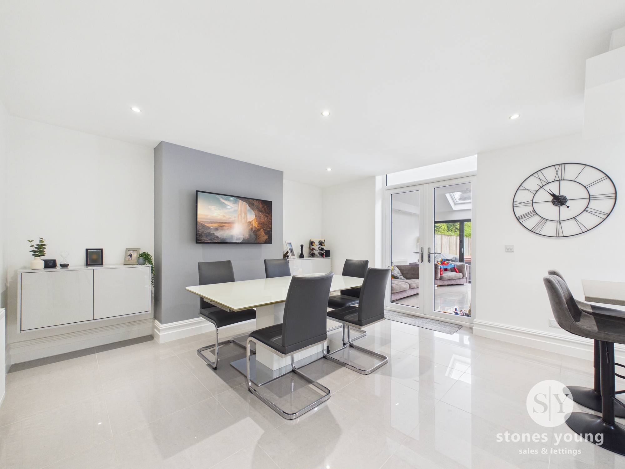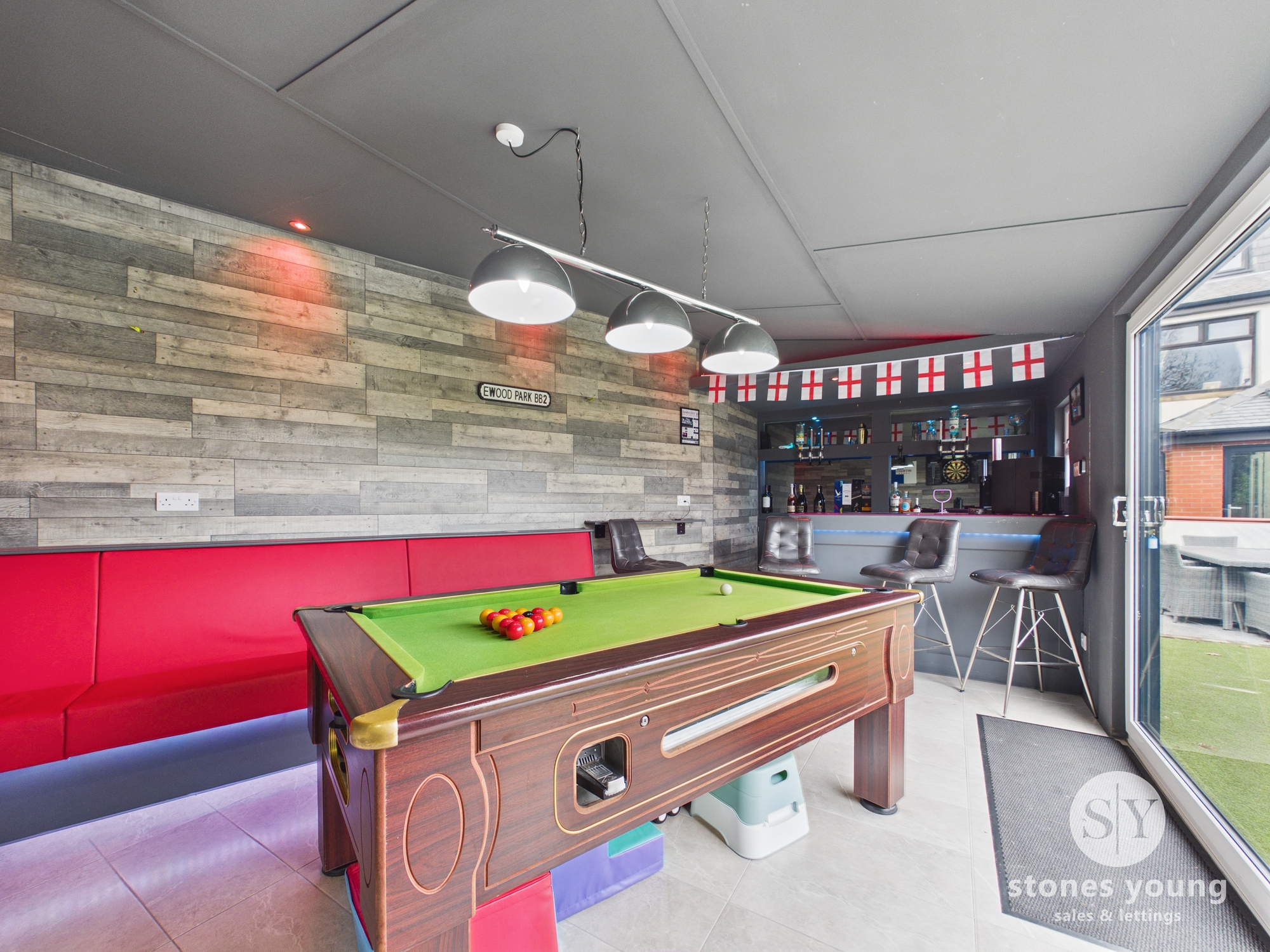 Externally, the property enjoys a spacious and beautifully landscaped private rear garden. A large patio area provides the perfect setting for outdoor dining and summer gatherings, while the fantastic outdoor bar and entertaining space makes this garden ideal for hosting friends and family. The garden also offers plenty of lawn space, creating a great area for both relaxation and play with a bespoke bar and versatile entertainment room, an outdoor WC, and generous storage rooms. Further benefits include a private driveway along with additional on-road parking, large rooms throughout, and a home that has been immaculately maintained and thoughtfully designed.