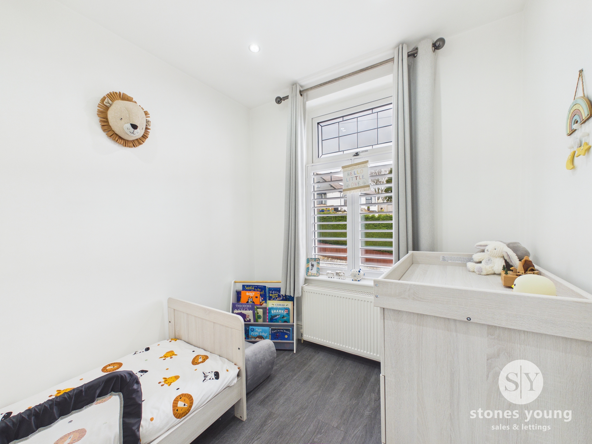 Single bedroom with laminate flooring, ceiling spot lights, double glazed uPVC window, panel radiator.