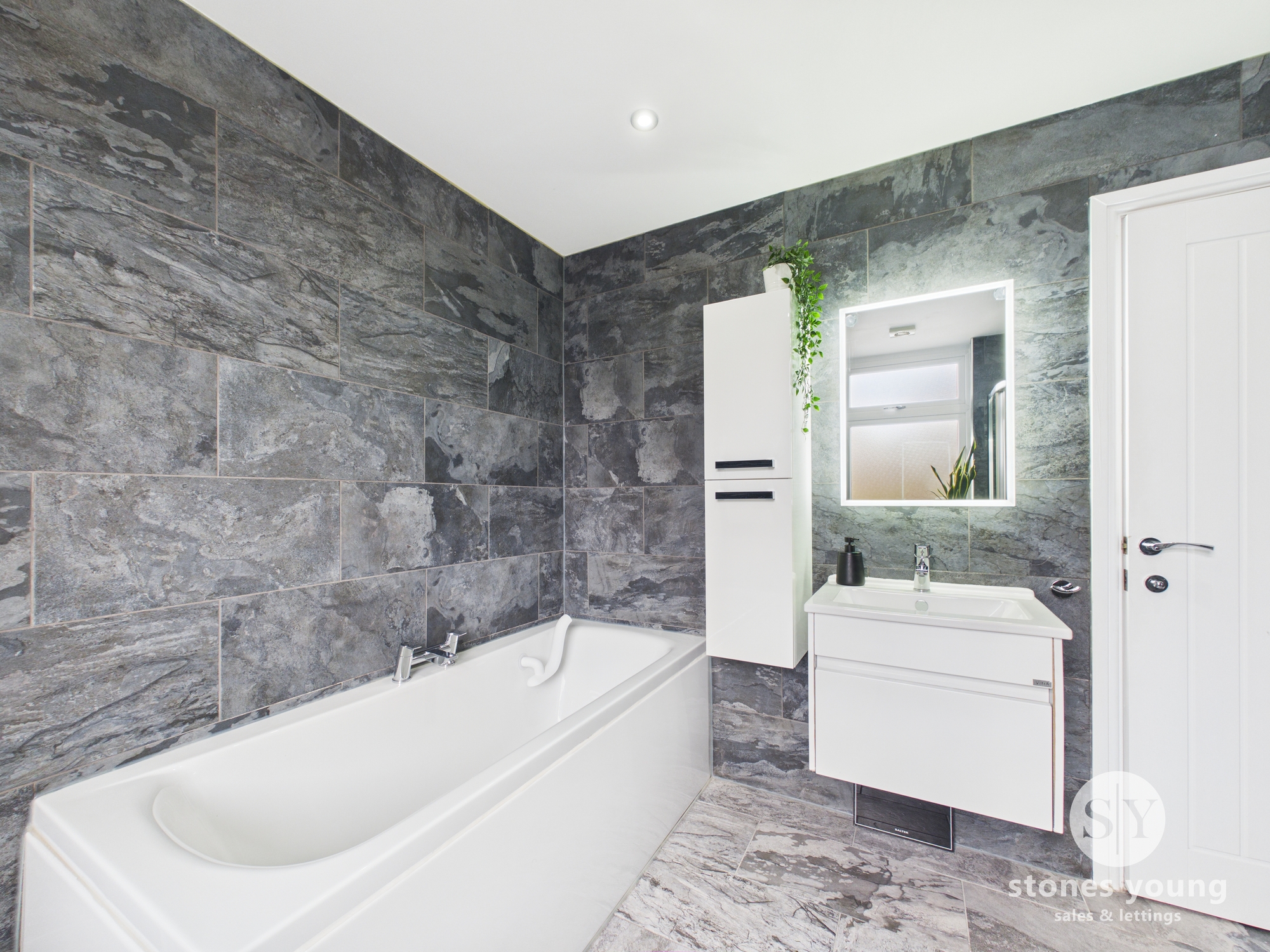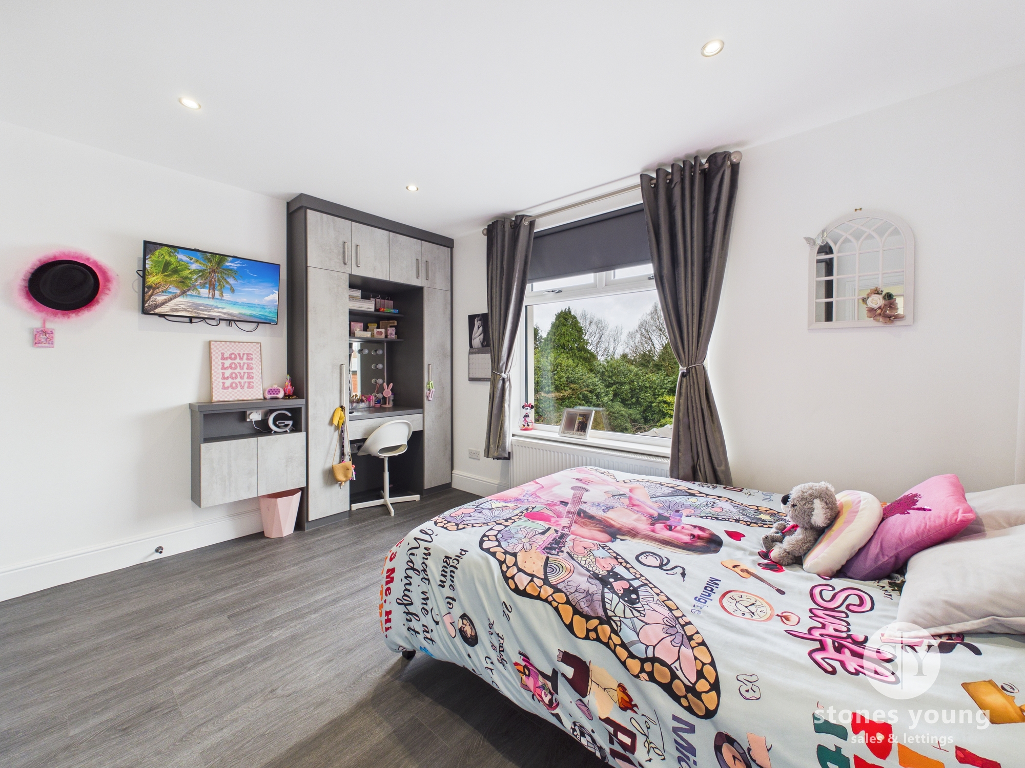 Upstairs, the property continues to impress with four well-proportioned bedrooms, all offering generous space and finished to a high standard. Two of the bedrooms benefit from fitted wardrobes, providing excellent built-in storage while maintaining a clean and modern look. The remaining bedrooms are equally versatile, making them ideal as children's rooms, guest accommodation, or a home office if required. The modern family bathroom is stylishly appointed and features a contemporary four-piece suite including a separate shower and bath, offering both comfort and practicality for a busy household.