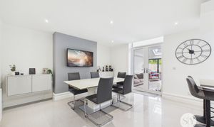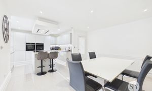 To the rear of the property is an impressive open-plan kitchen diner, a space that works effortlessly for both cooking and entertaining which is enhanced from a central island, a range of integrated appliances, and ample storage and workspace. The dining and entertaining area provides plenty of space for family meals and social gatherings, French doors from the dining area lead through to a stunning orangery, complete with bi-fold doors opening onto the garden.