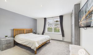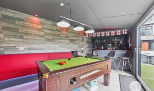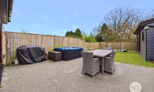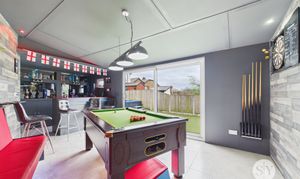 Externally, the property enjoys a spacious and beautifully landscaped private rear garden. A large patio area provides the perfect setting for outdoor dining and summer gatherings, while the fantastic outdoor bar and entertaining space makes this garden ideal for hosting friends and family. The patio also includes a hot tub, perfect for relaxing in the evening. The garden offers plenty of lawn space, creating a great area for both relaxation and play with a bespoke bar and versatile entertainment room, an outdoor WC, and generous storage rooms.