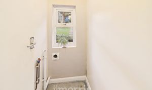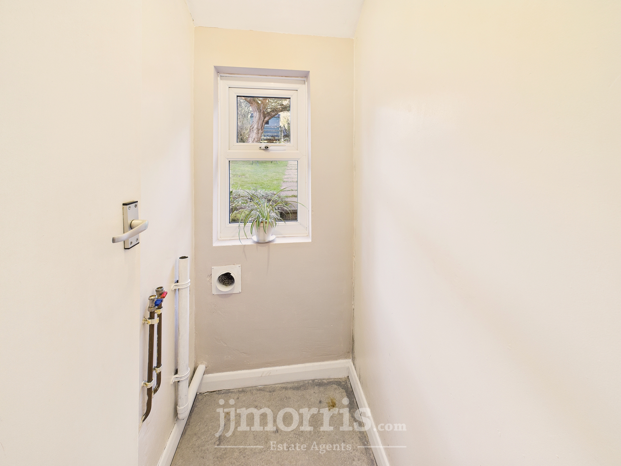 With vinyl floor covering, uPVC double glazed window to rear, 2 power points, plumbing for automatic washing machine, tumble drier vent, ceiling light and 2 wall shelves.