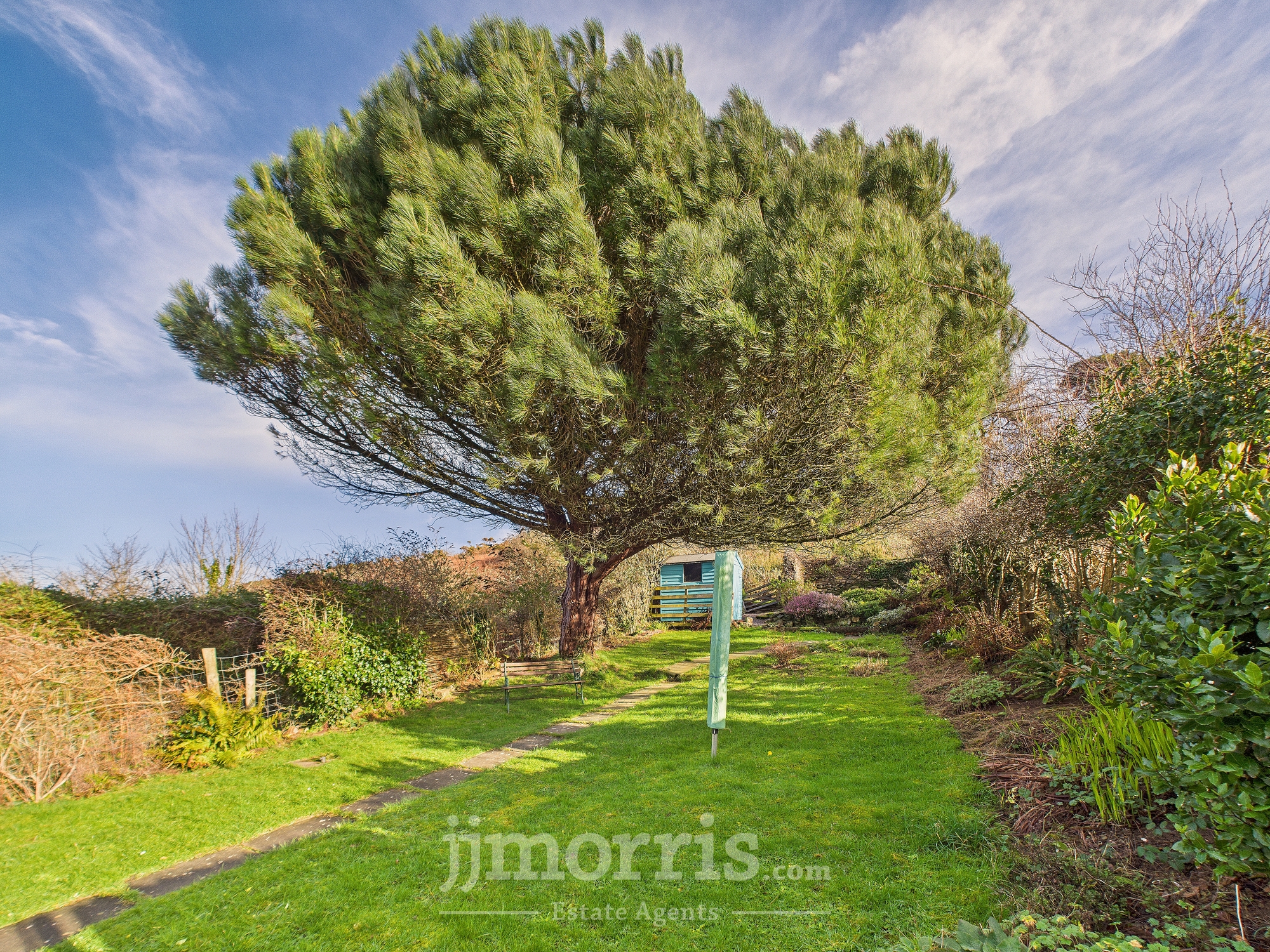 Walled Forecourt together with a Paved Patio to the fore and a sizeable sloping rear Lawned Garden with Flowering Shrubs, a Scots Pine Tree and a Garden Shed 7’0” x 5’0”.