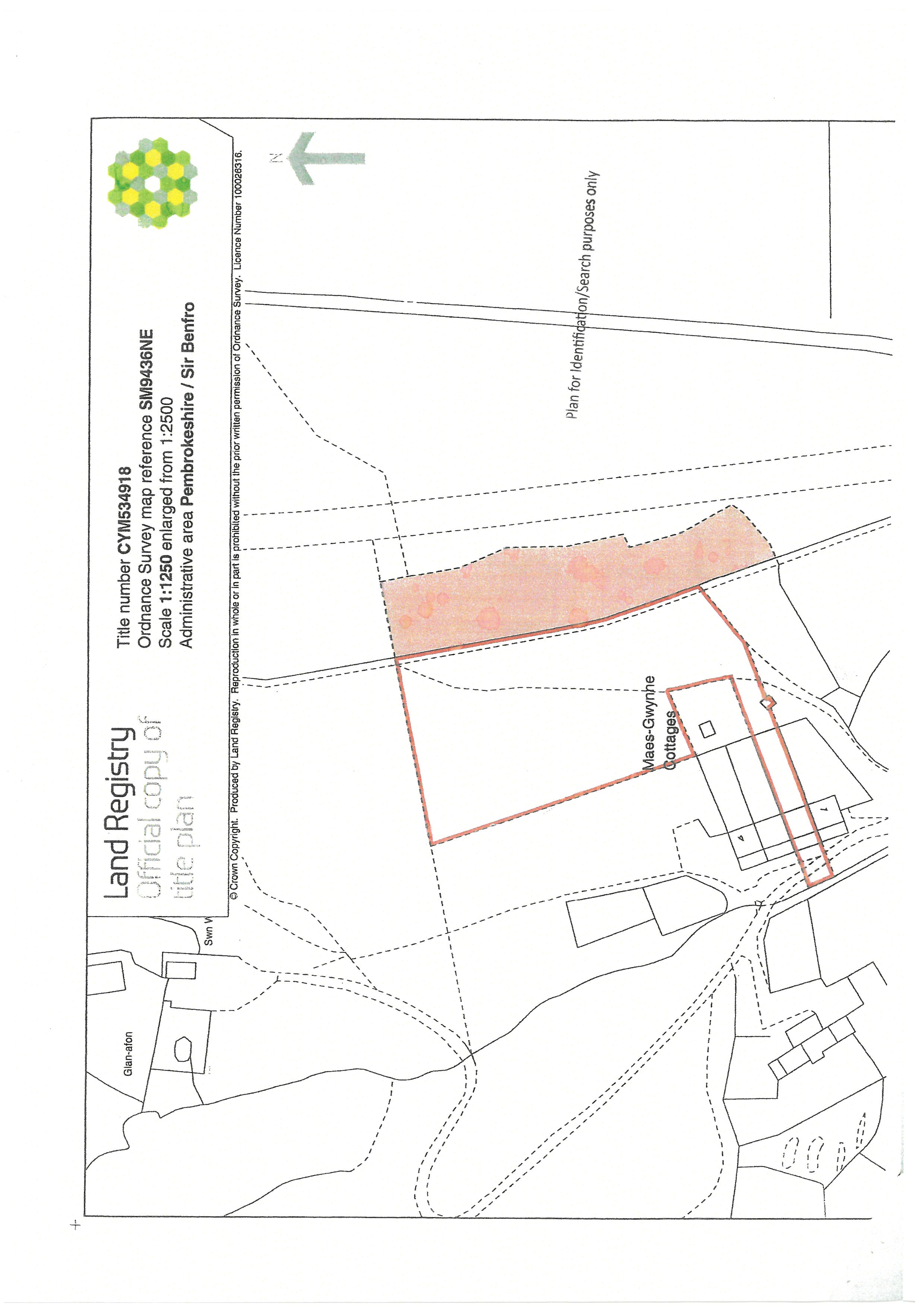 Beyond is a sloping area of ground which extends to an Acre or thereabouts which can only be considered as Scrub or Gorse Land. 2 Outside Electric Lights and an Outside Water Tap. The boundaries of the Property are edged in red on the attached copy of The Land Registry Title Plan to the Scale of 1/2500. The area of Land shaded pink on the Plan does not form part of the Property.
