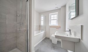 On the first floor, the principal bedroom features an en-suite shower room, complemented by a further en-suite bedroom, two additional bedrooms and a family bathroom with both bath and shower facilities.
