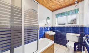 Back inside to the first floor is bedroom three and a second bathroom with electric shower in cubicle, wc and wash hand basin. A store room/linen cupboard leads off and there is the potential for further expansion in the substantial loft space which also houses the central heating boiler.