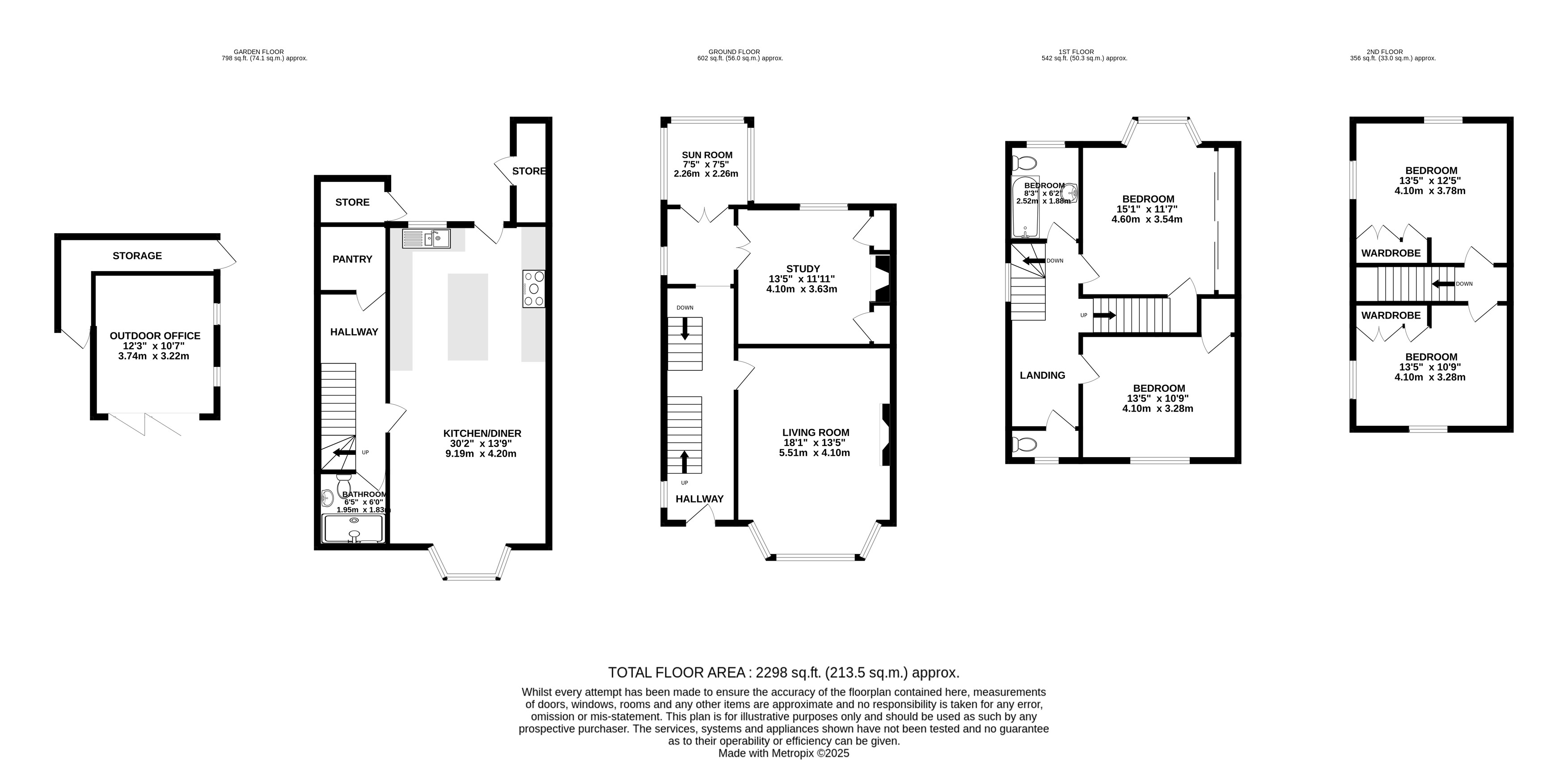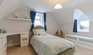 The second floor features two further large double bedrooms, continuing the sense of space and light throughout the home. Each room provides ample versatility for family living, with potential to be used as guest rooms, additional offices, or creative spaces.
