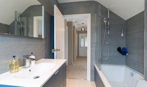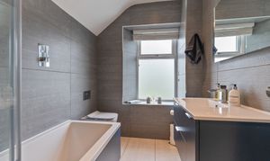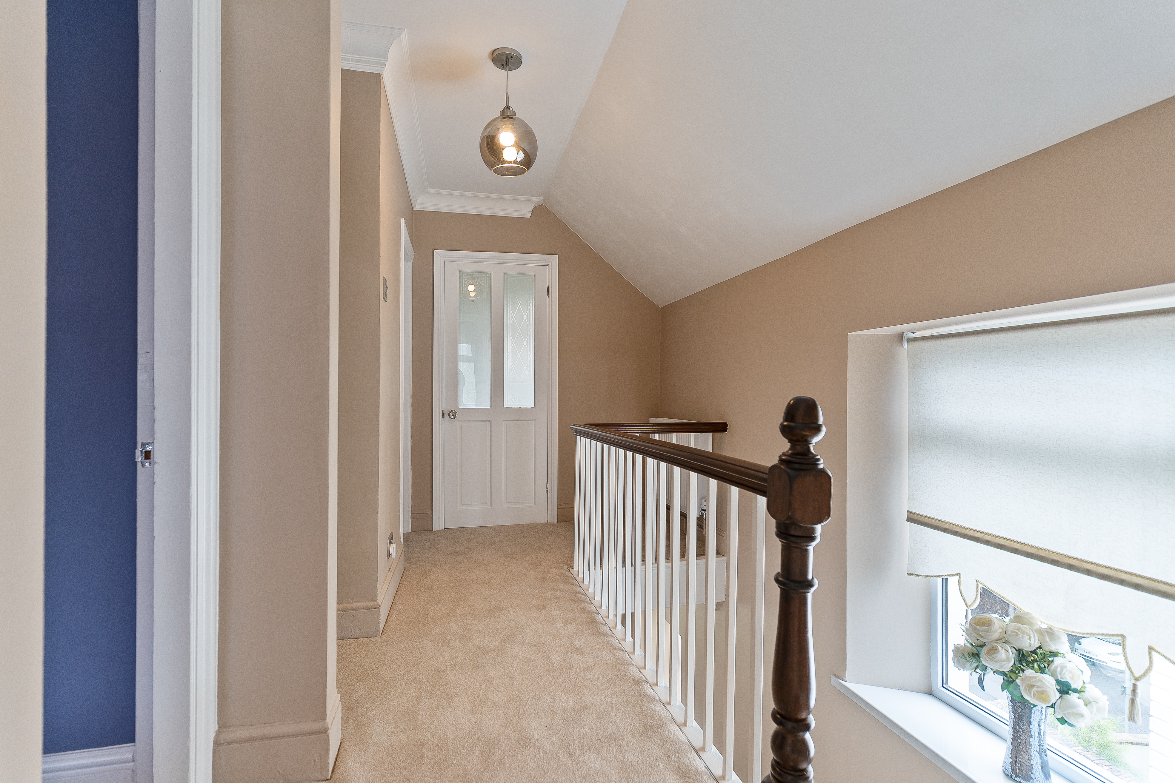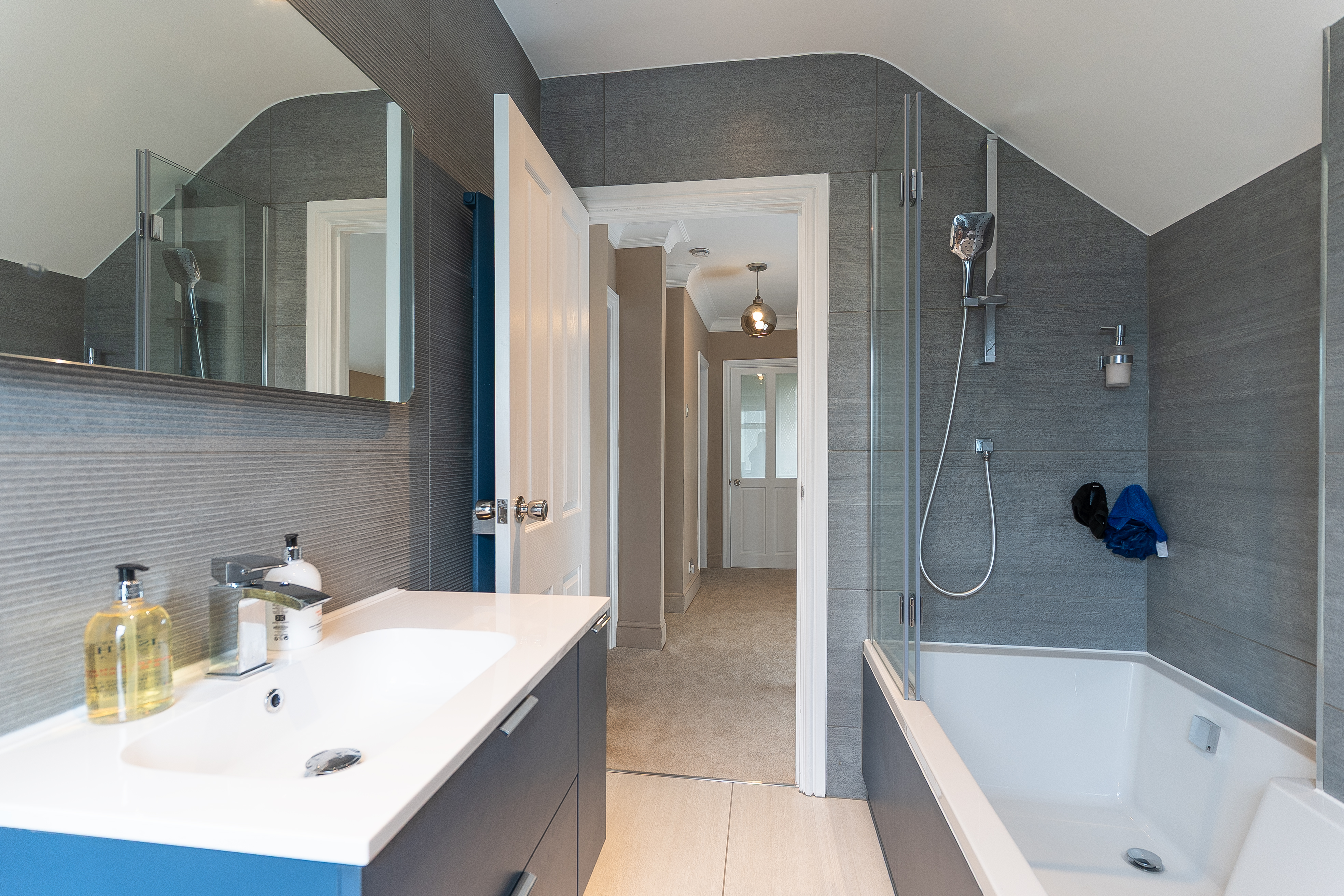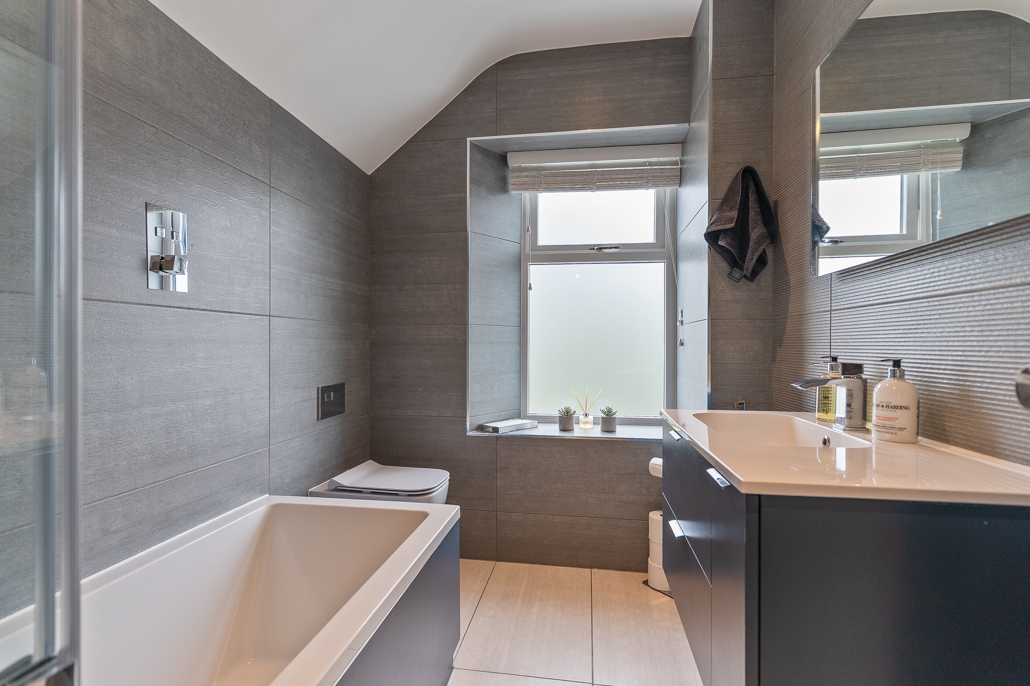 On the first floor are two of the property’s four double bedrooms, both beautifully proportioned and presented, along with the modern family bathroom fitted with quality fixtures and a sleek design.