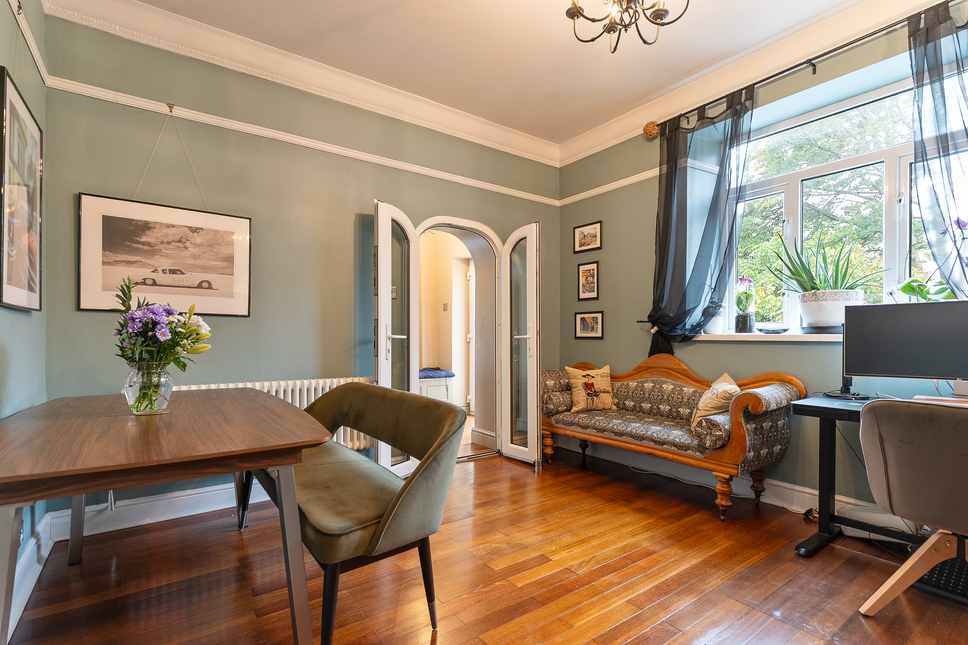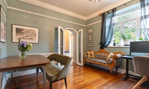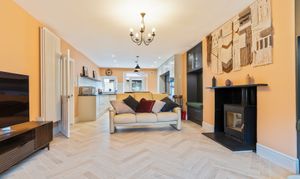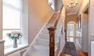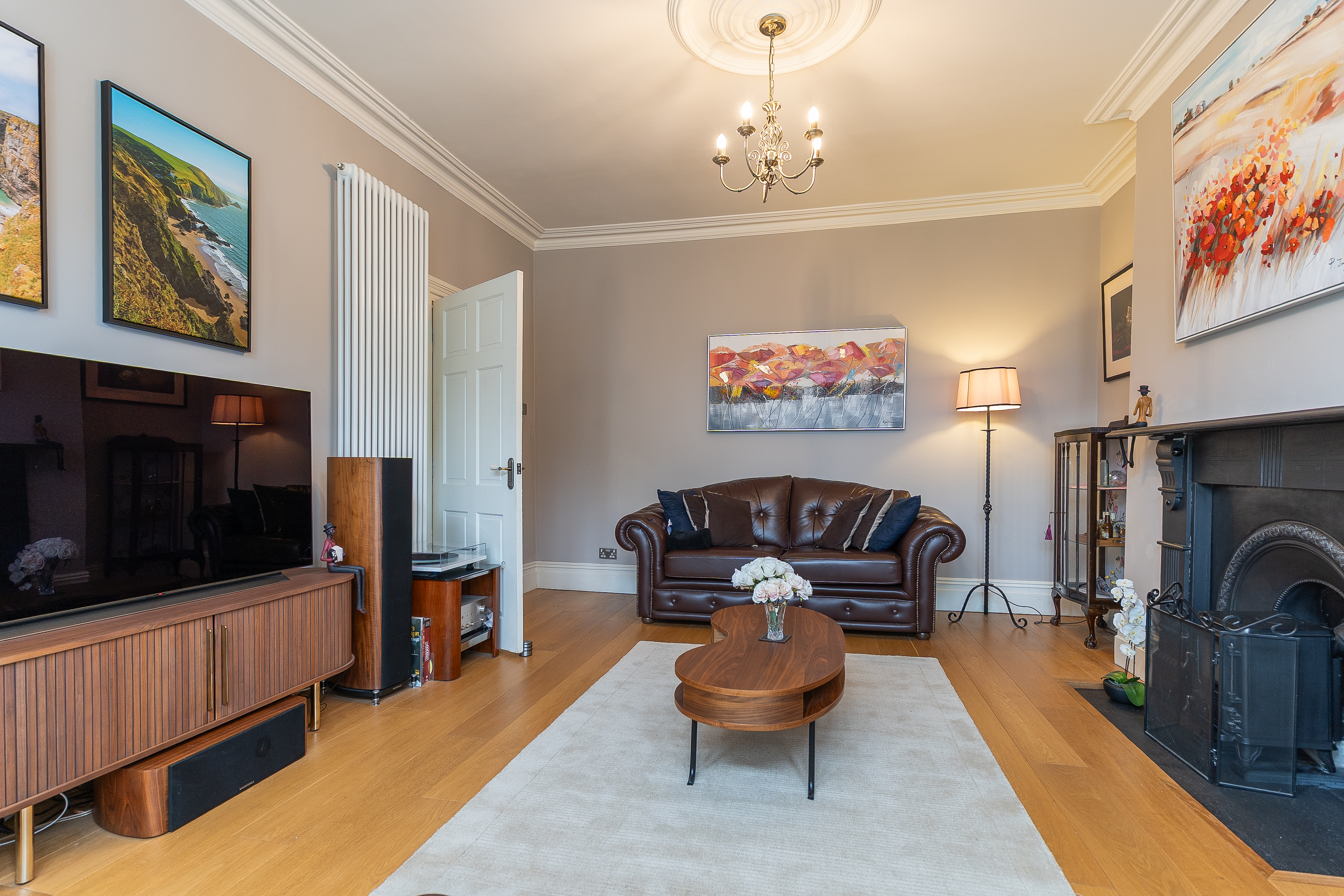 This stunning family home is spread across four floors, offering flexible and spacious accommodation throughout. On the entrance level, you are welcomed into a beautifully presented hallway that leads to two generous reception rooms, both tastefully decorated and filled with natural light. These versatile rooms provide ample space for formal seating, dining, or use as a home office or study. To the rear of this level is a delightful sunroom, offering a tranquil space to relax while enjoying views over the garden and surrounding landscape.