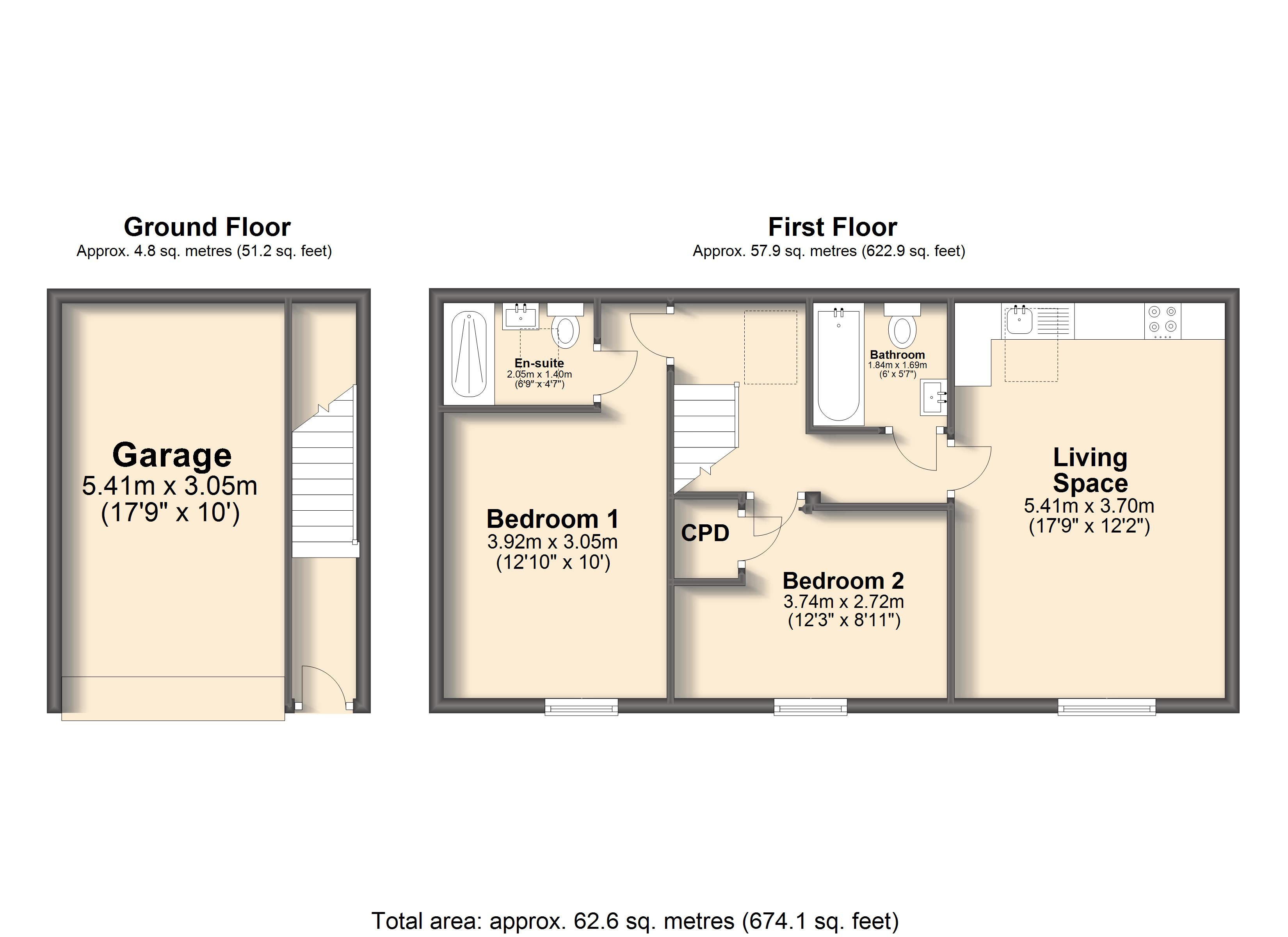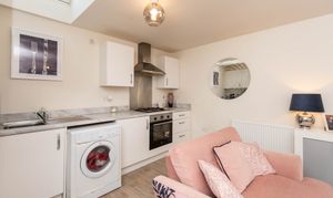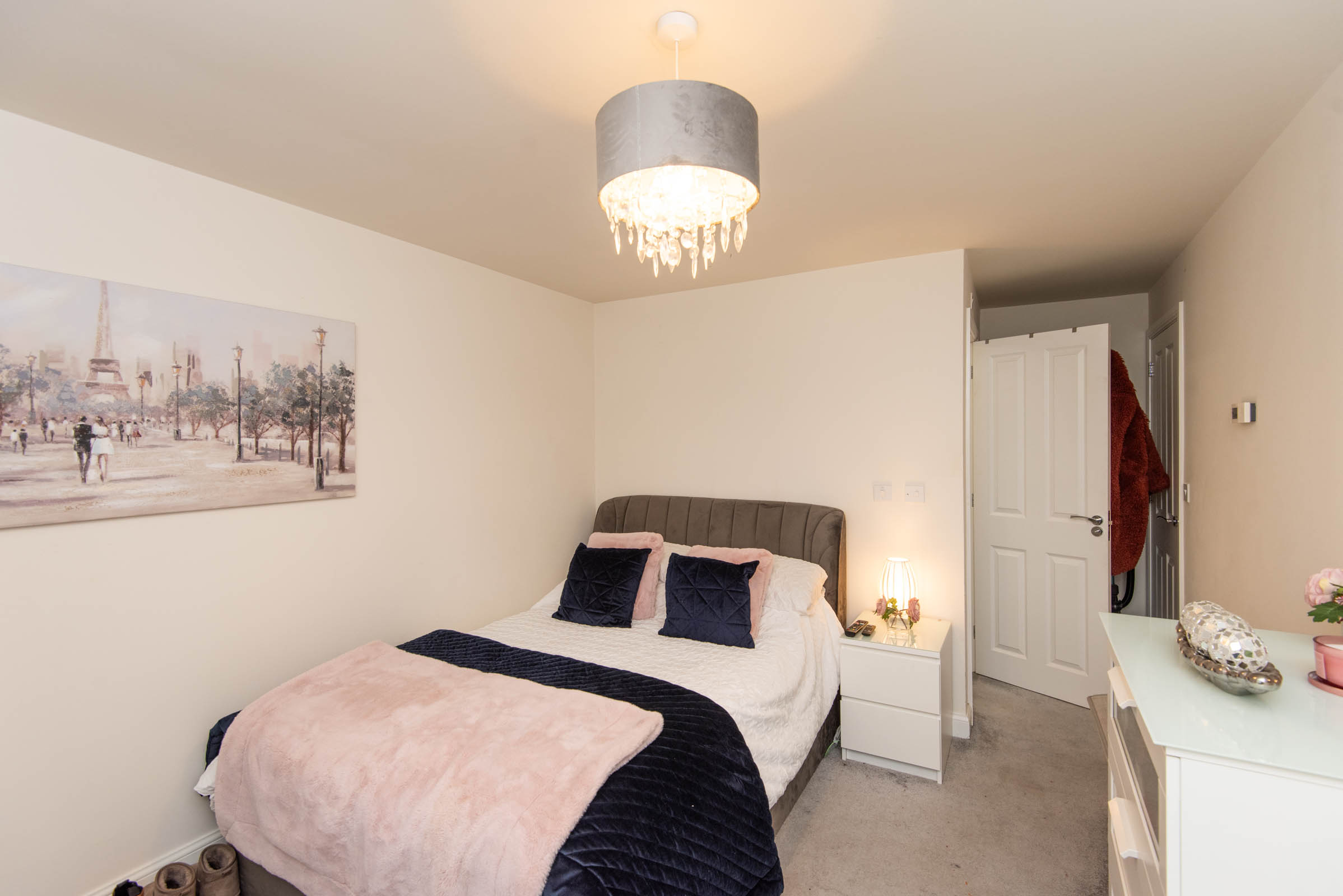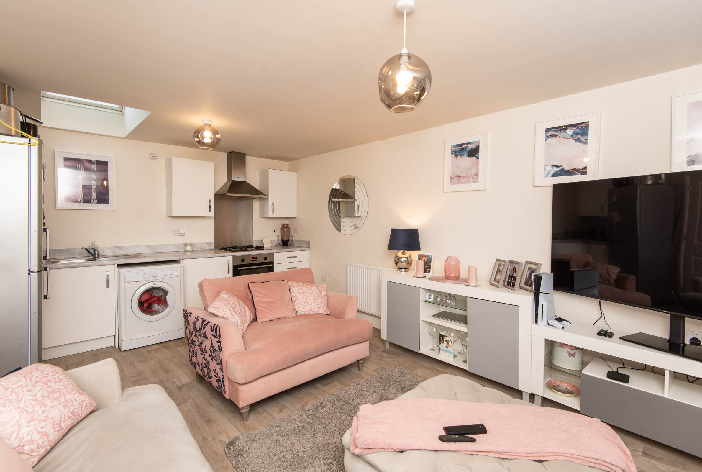 Offering a fabulous first-floor position accessed by a private entrance hall, the property offers a stunning open-plan kitchen, dining and living space with integrated and freestanding appliances. The two bedrooms are both doubles, with a superb principal bedroom featuring an en-suite shower room and a further family bathroom with a three-piece suite.